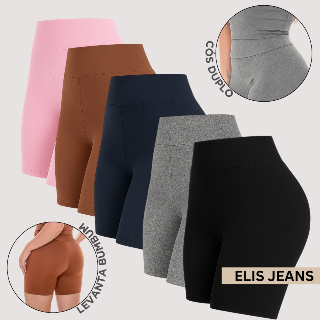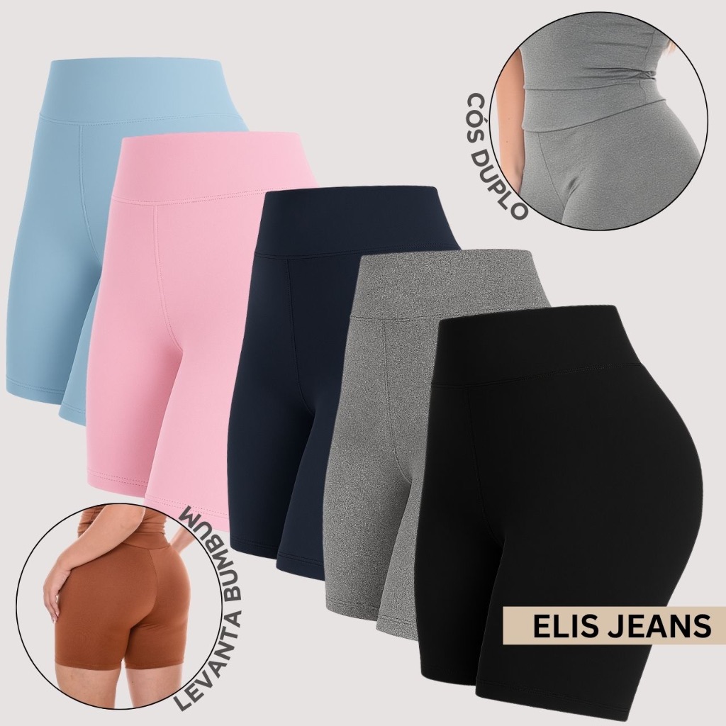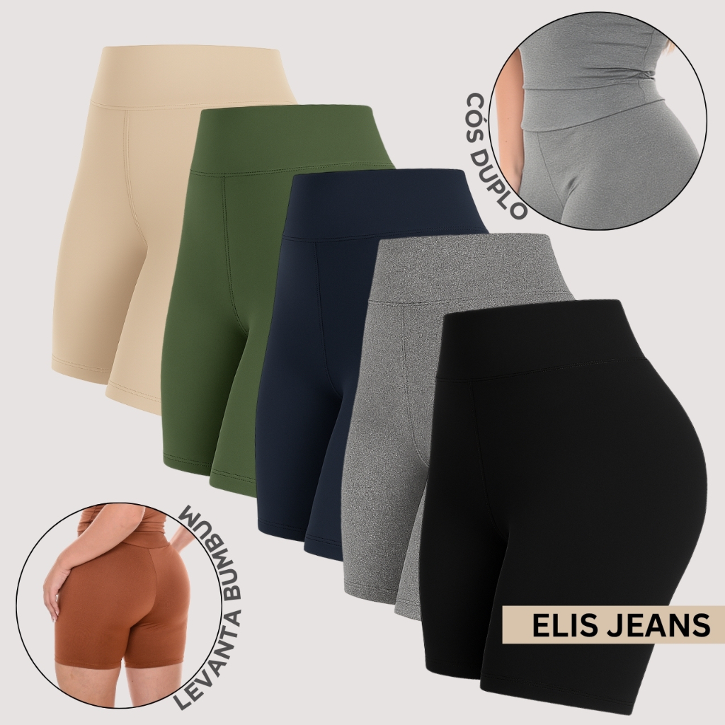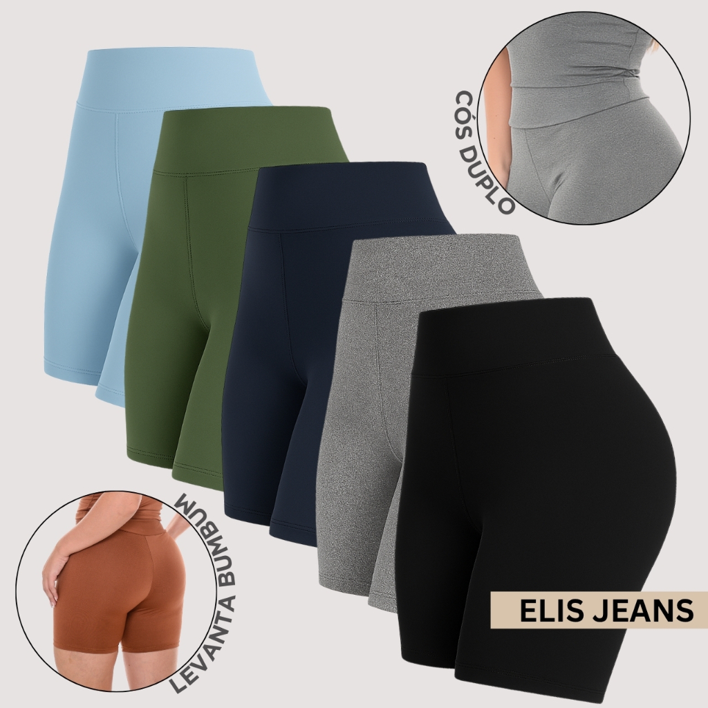 Kit 5 Shorts Feminino Fitness Meia Coxa Cintura Alta Bermuda Legging Zero Transparência