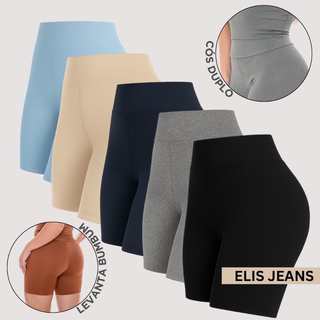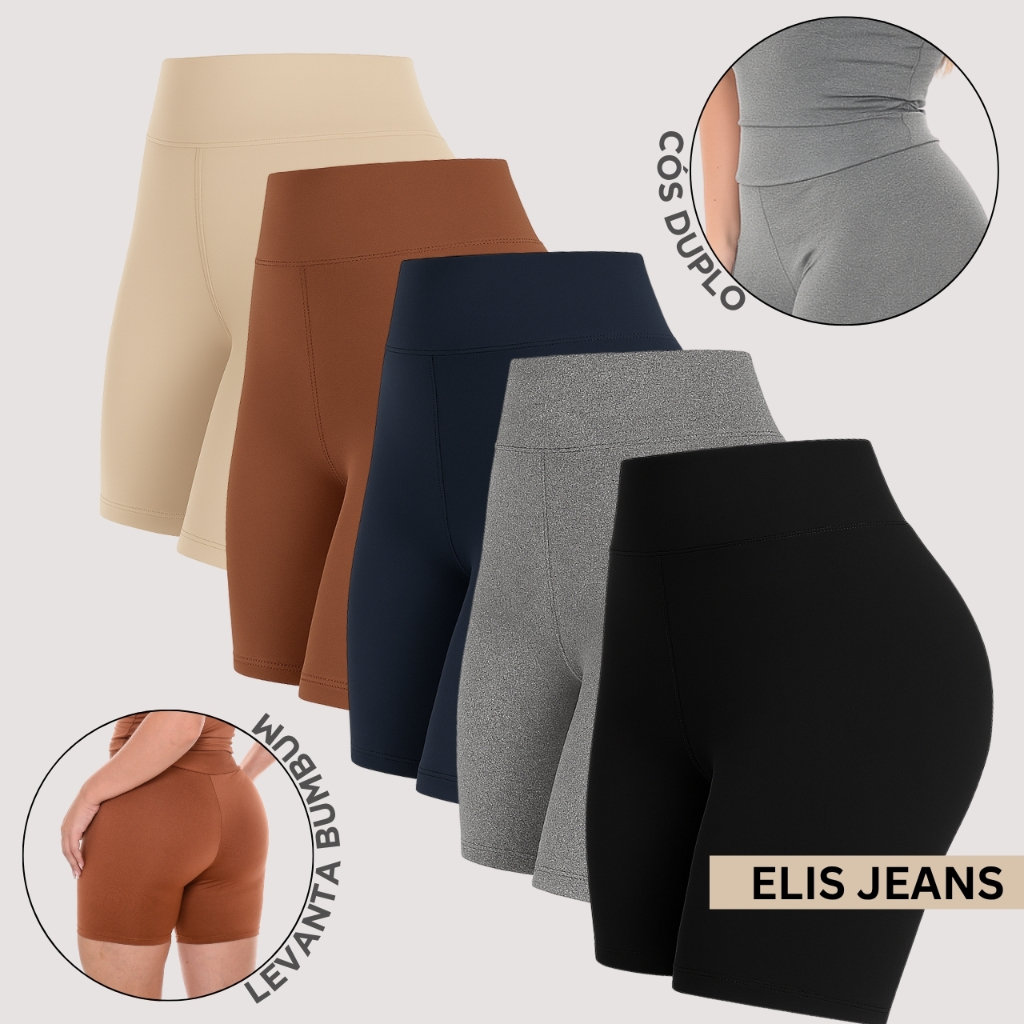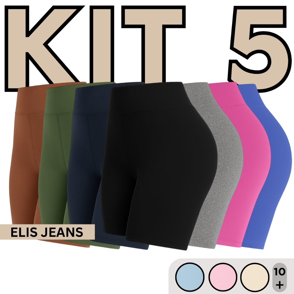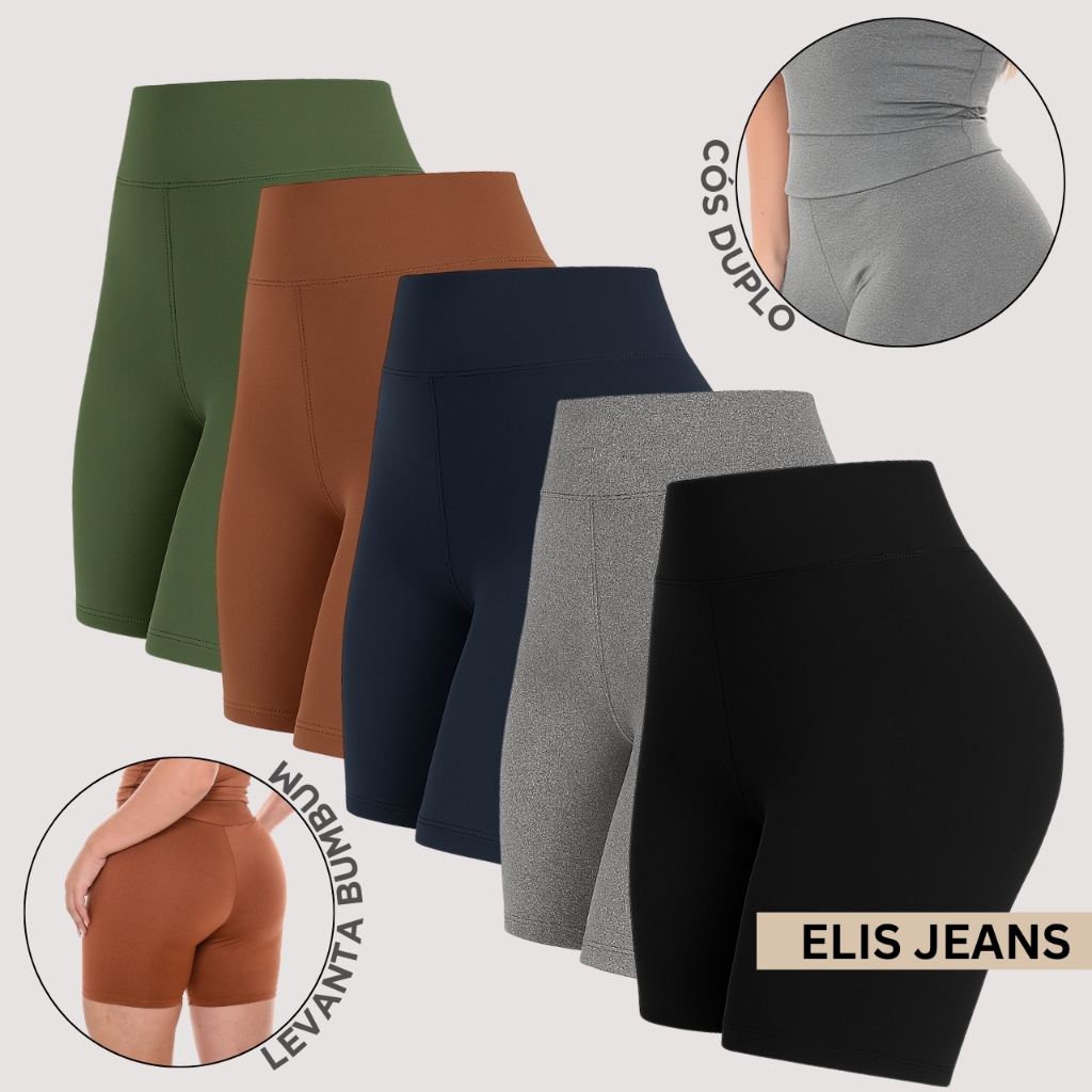 Kit 5 Shorts Feminino Fitness Meia Coxa Cintura Alta Bermuda Legging Zero Transparência