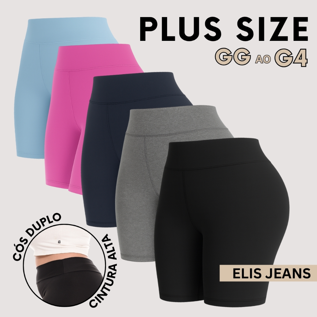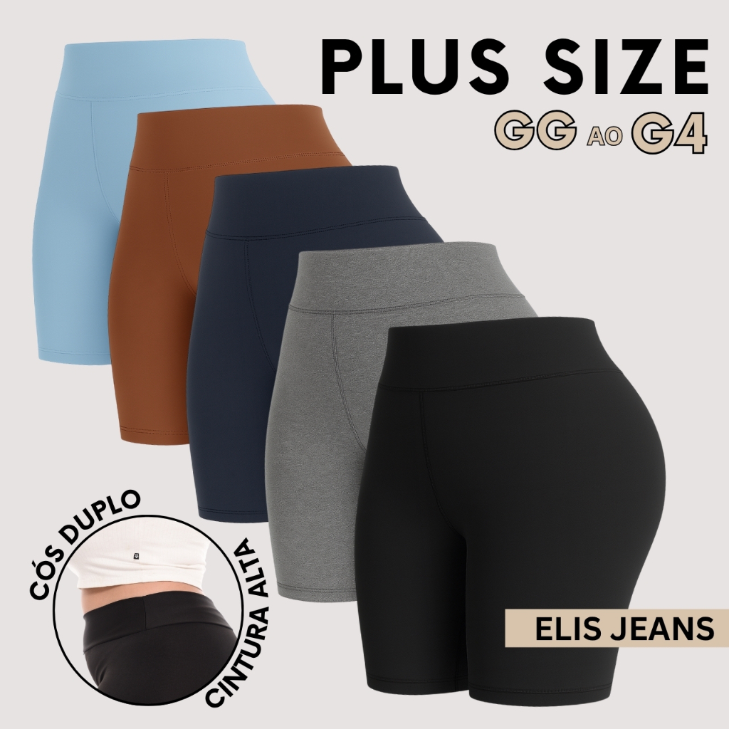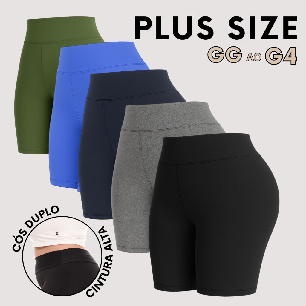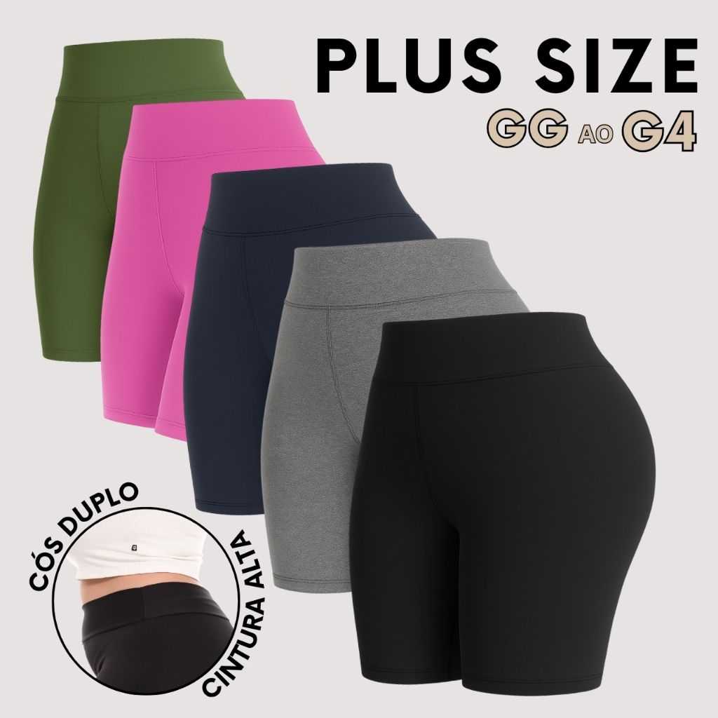 Kit 5 Shorts Feminino Plus SizeFitness Meia Coxa Short Cintura Alta Bermuda Legging Zero Transparência