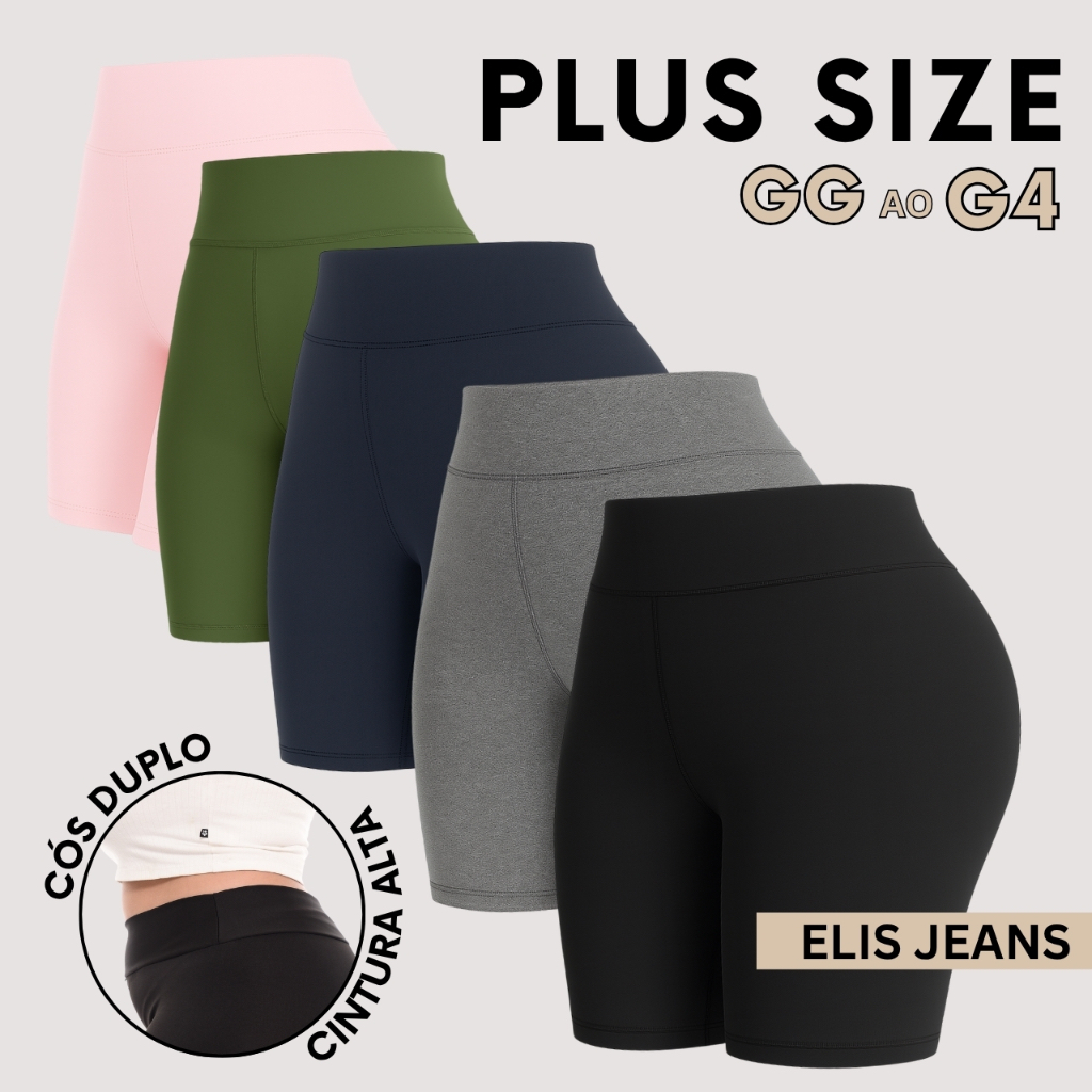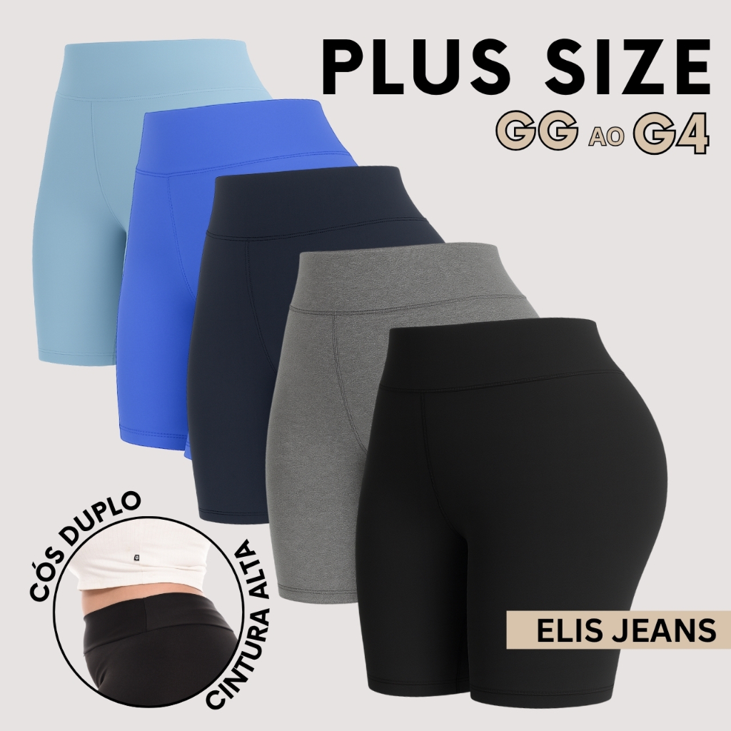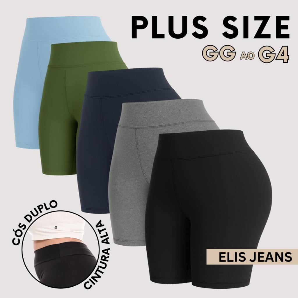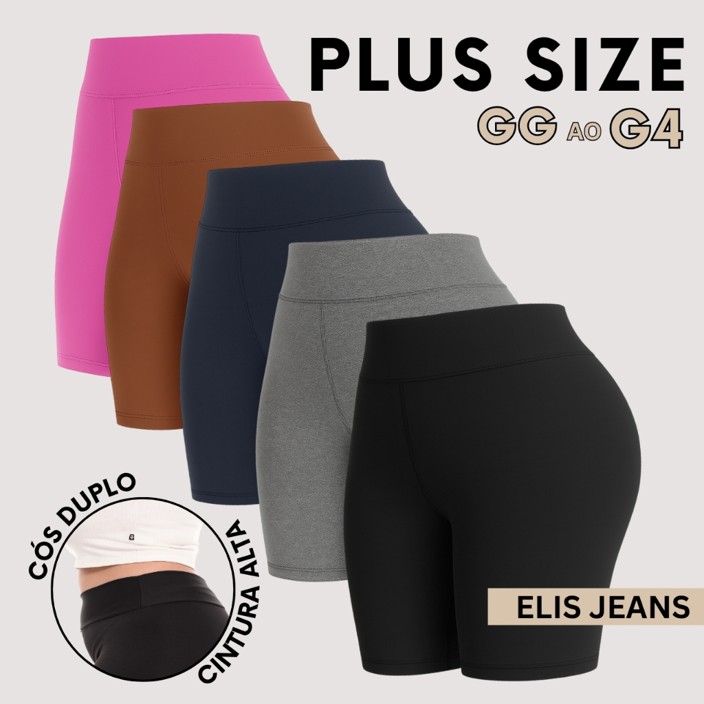 Kit 5 Shorts Feminino Plus SizeFitness Meia Coxa Short Cintura Alta Bermuda Legging Zero Transparência
