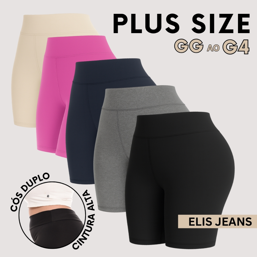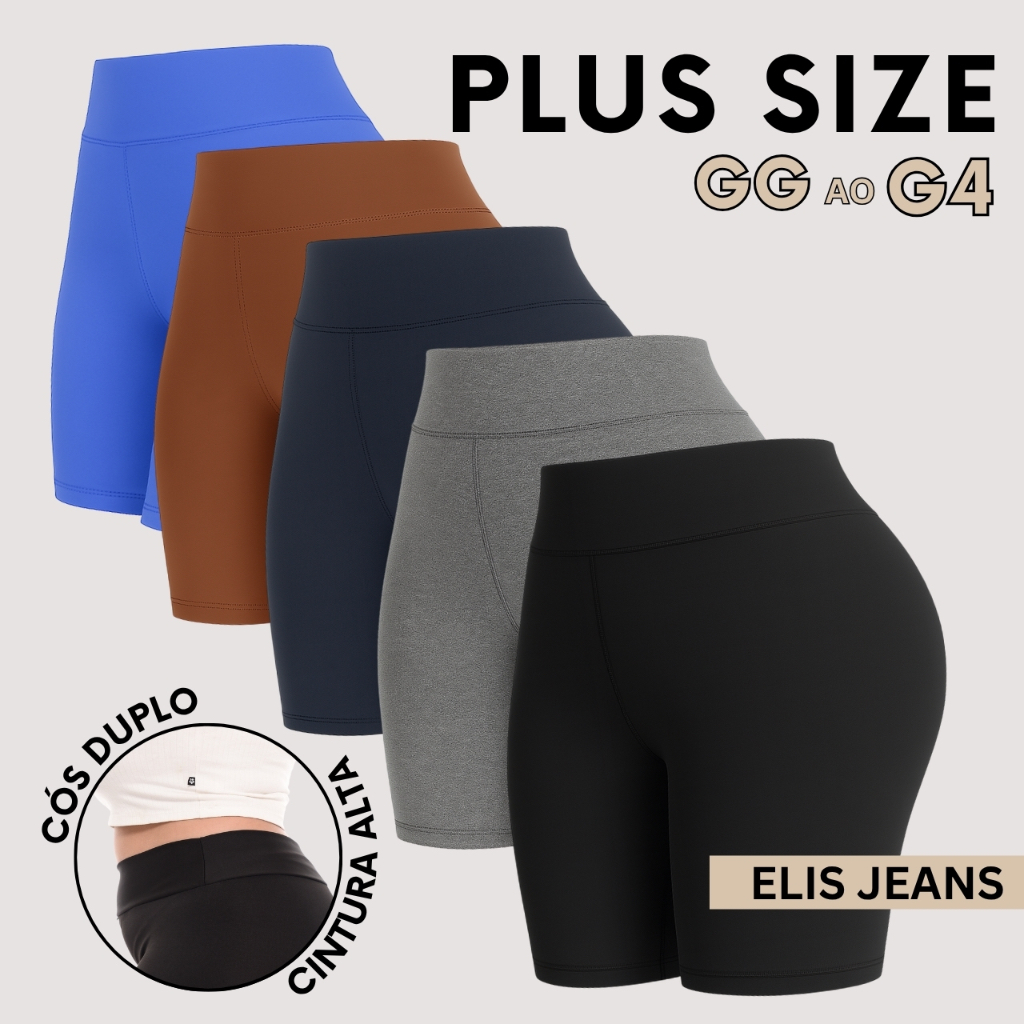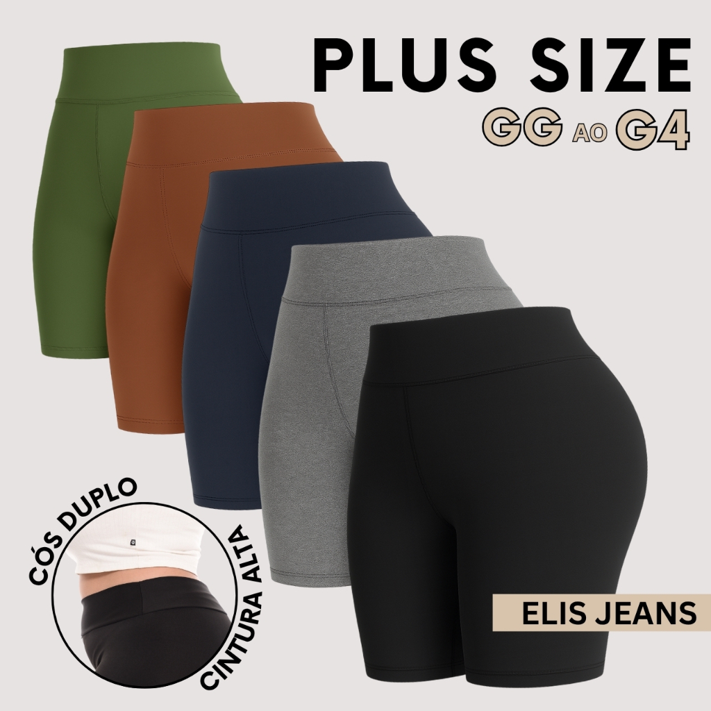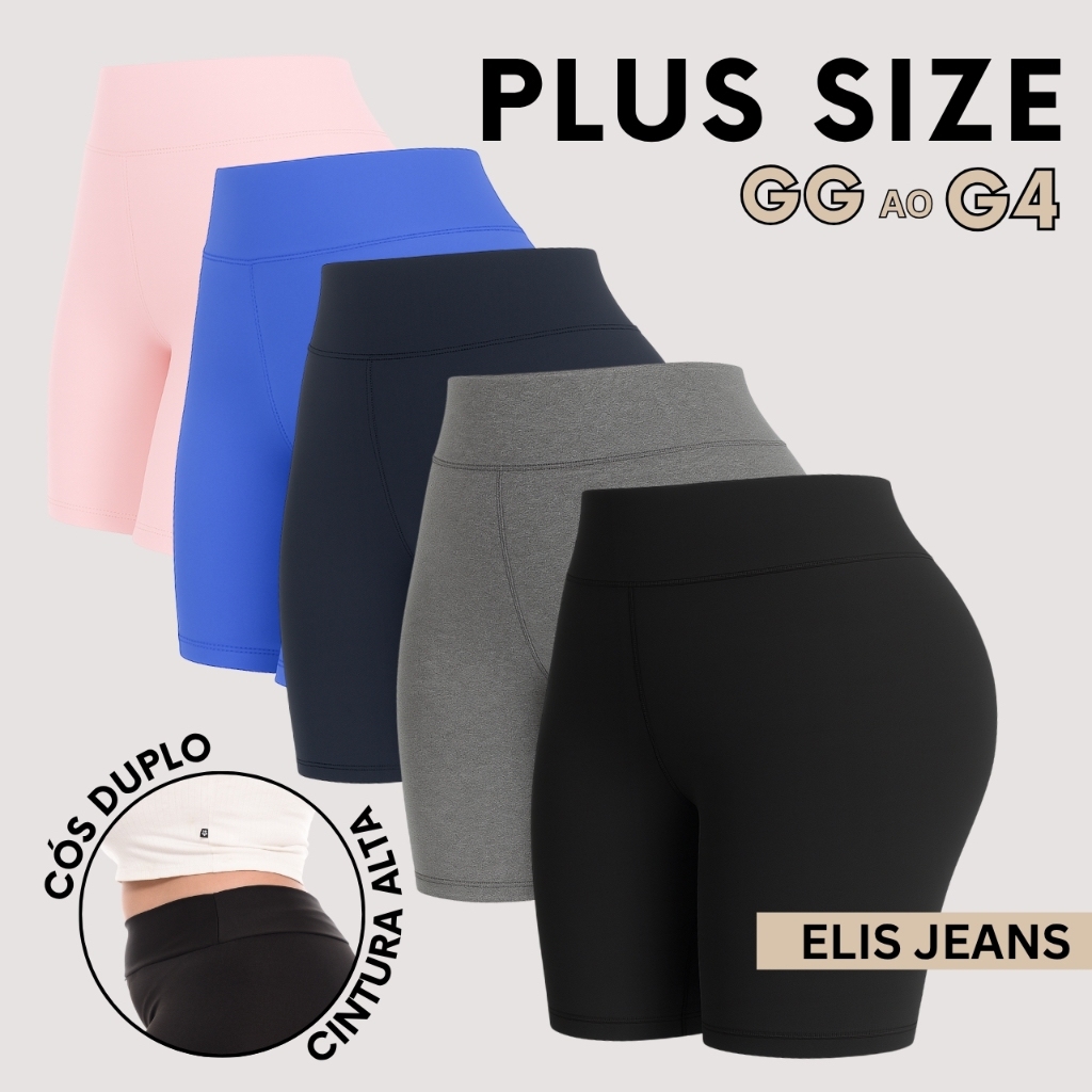 Kit 5 Shorts Feminino Plus SizeFitness Meia Coxa Short Cintura Alta Bermuda Legging Zero Transparência