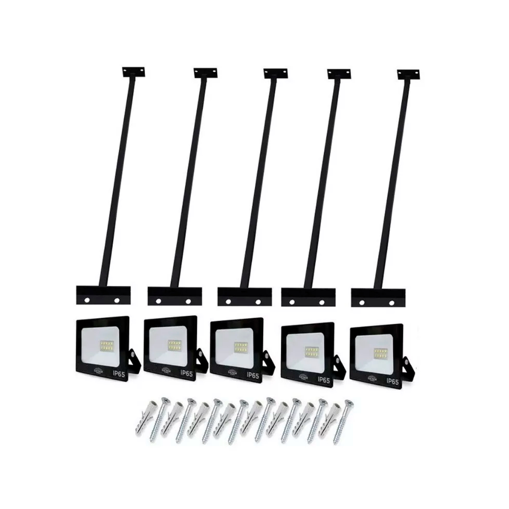 Kit 5 Suportes 60cm + 5 Refletor Led 100w Exterior Outdoor