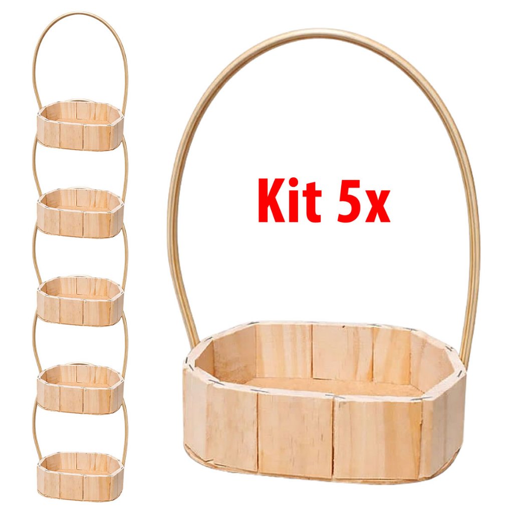 Kit 5 cestas de Madeira Fraldeira Oval c/ Alça 15x11cm