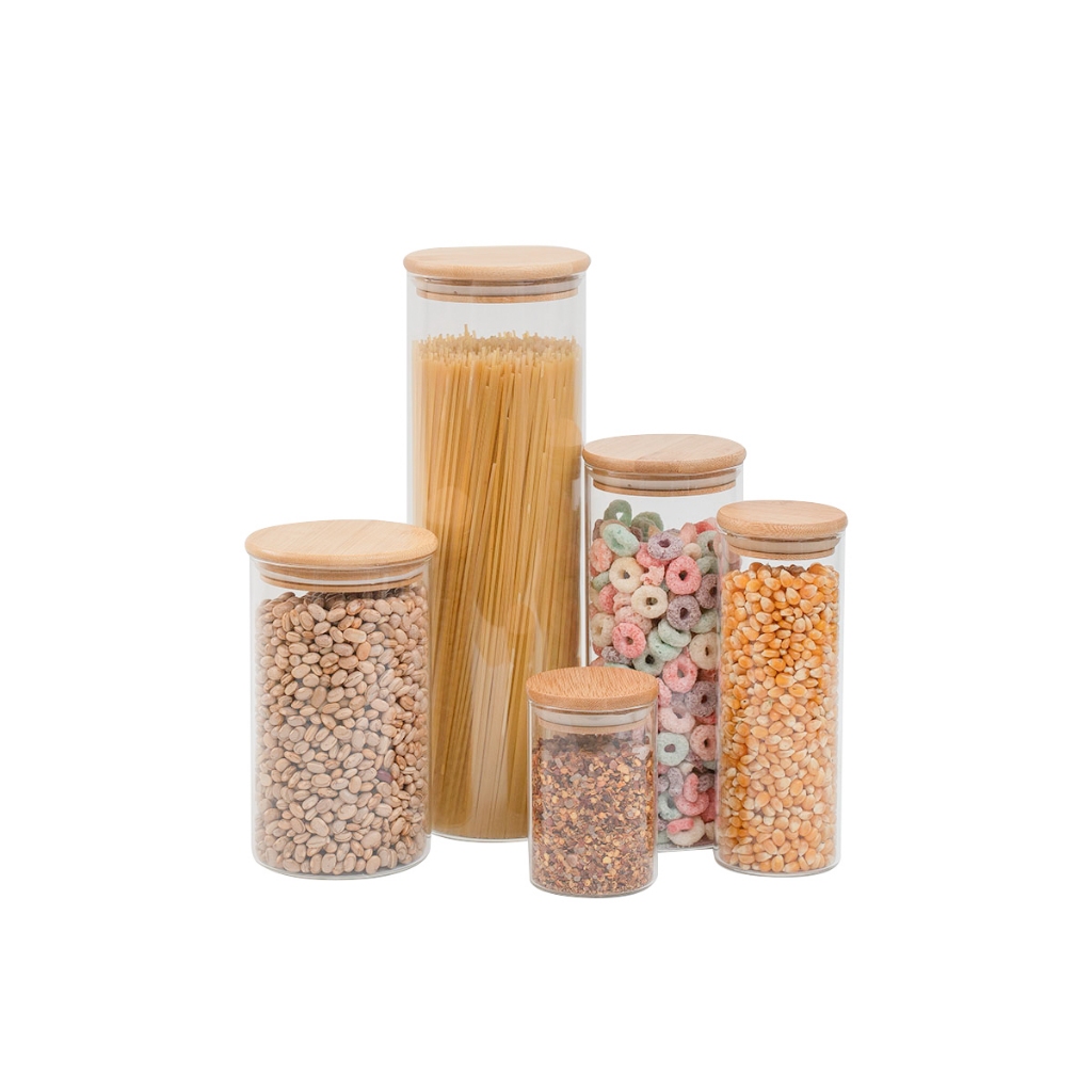 Potes de Vidro P/ Mantimentos C/ Tampa Bambu Oikos - 5 Pçs
