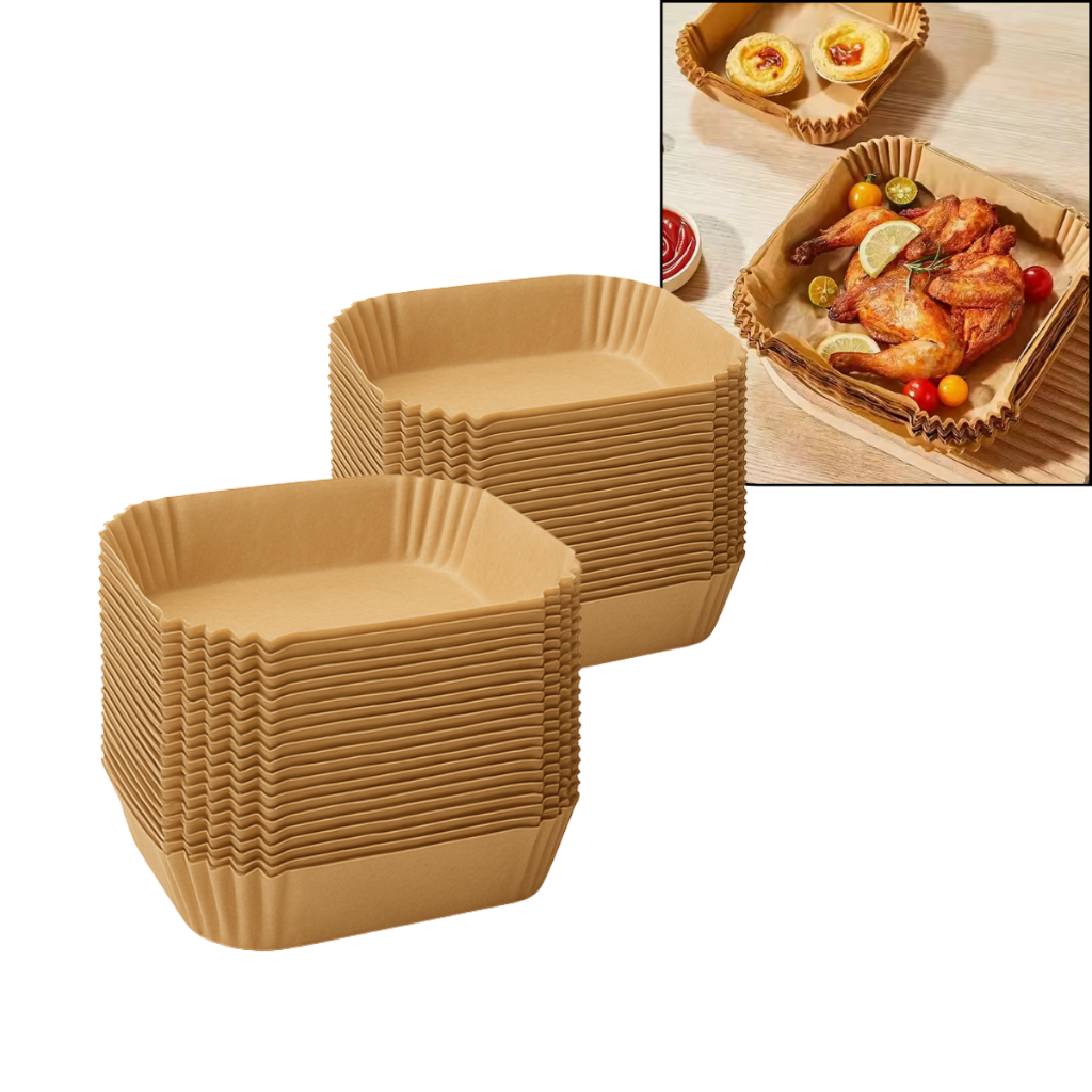 Kit 50 - 100 Forma Quadrada Para AirFryer Forro Protetor Fritadeira Elétrica Descartável 16cm e 20Cm