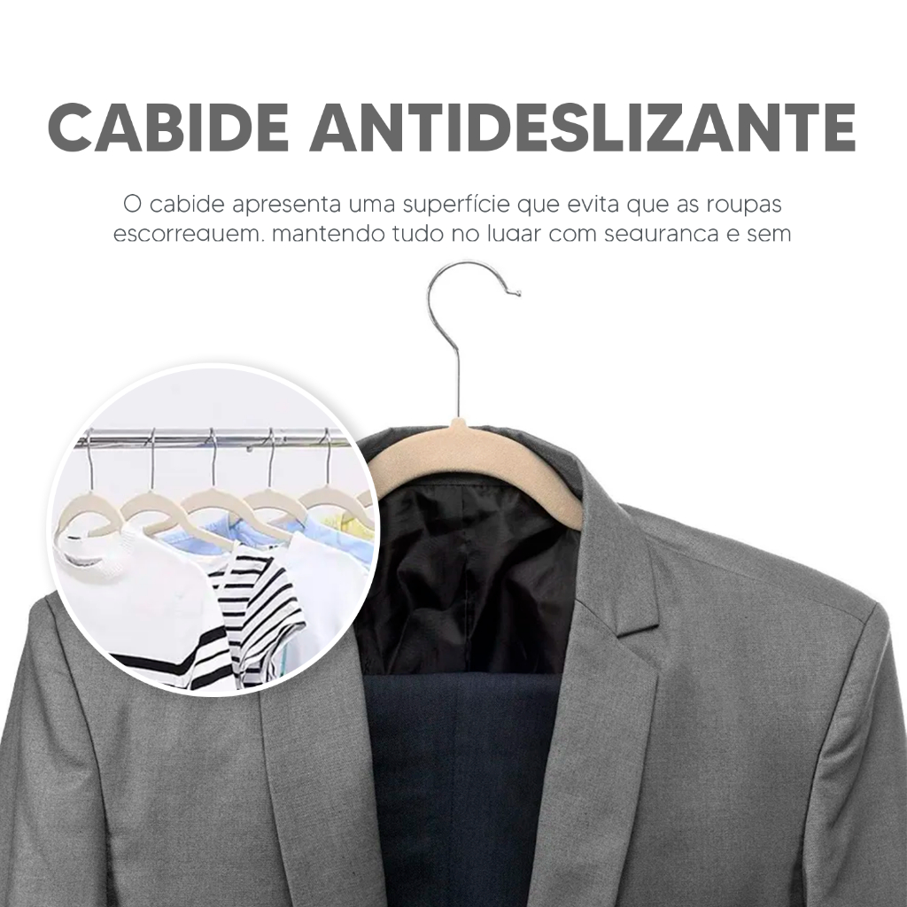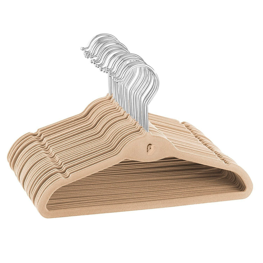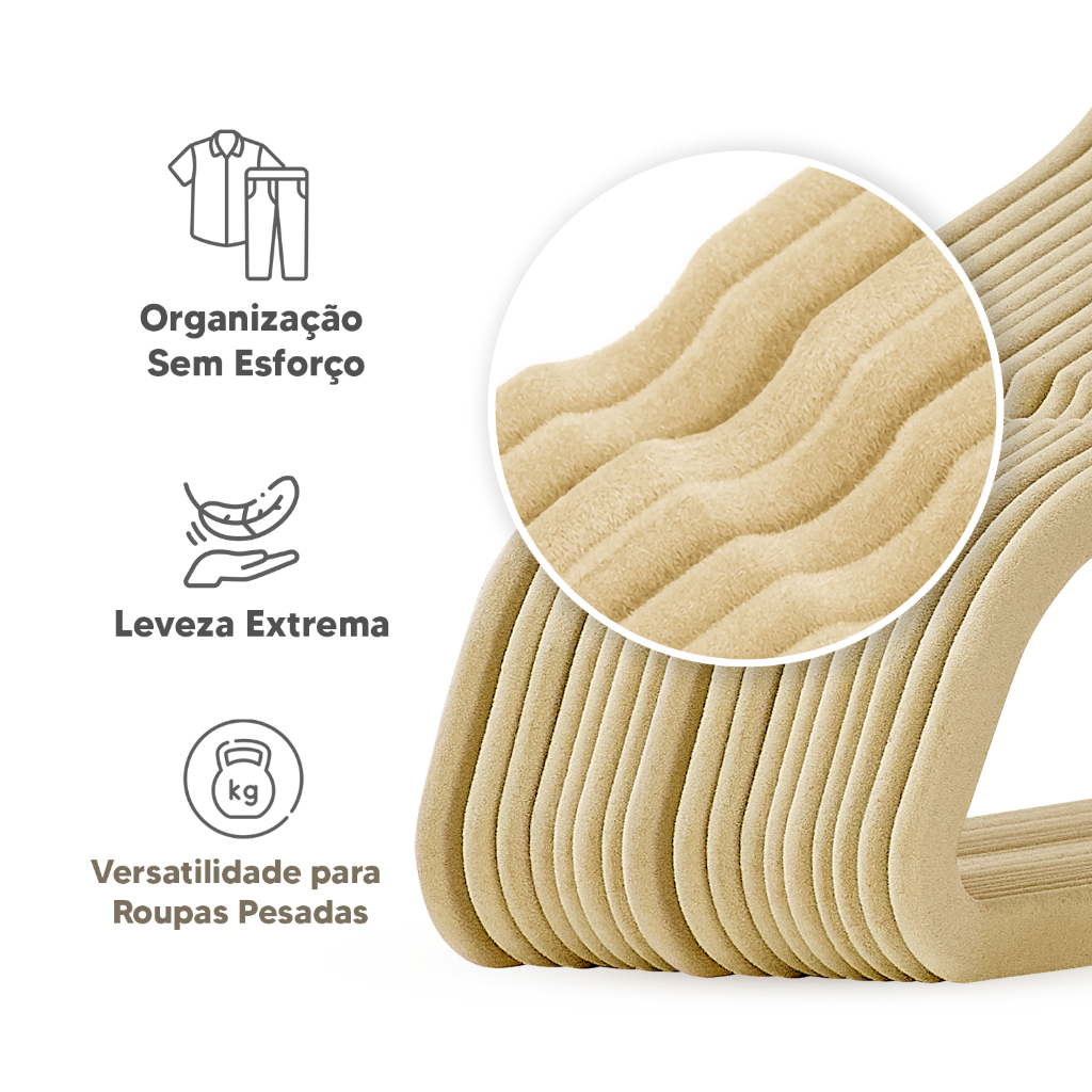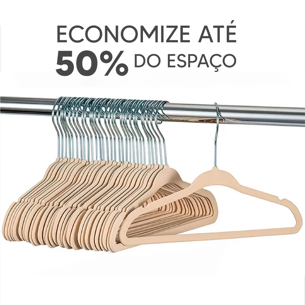 Kit 50 Cabides De Veludo Slim Ultra Finos Antideslizante Bege
