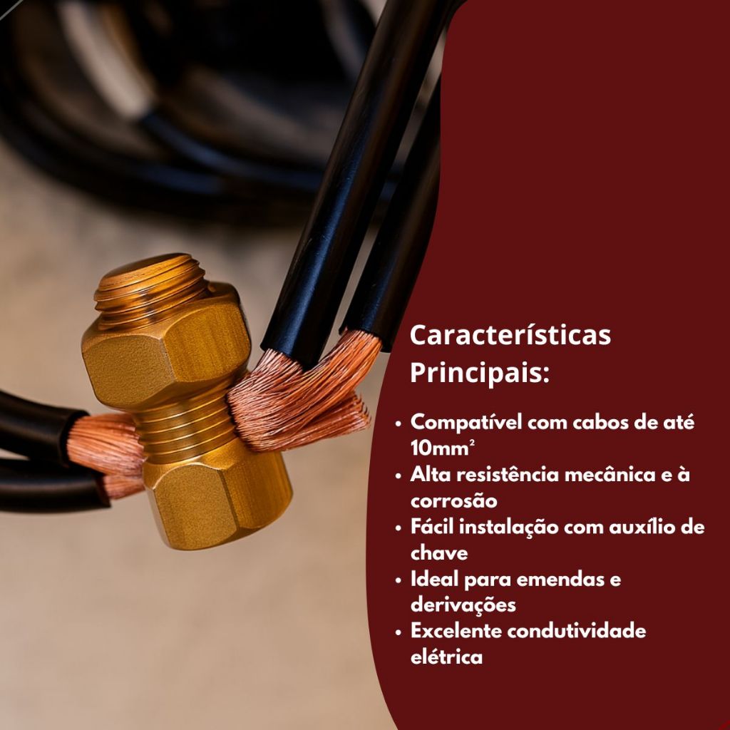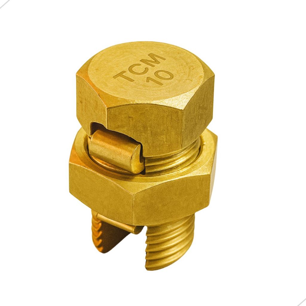Kit 50 Conector Split Bolt 10mm Latão Sistema Aterramento Emenda Elétrica Parafuso Fendido Cabo Fio
