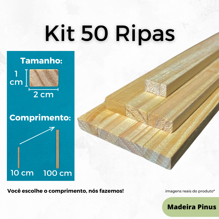 Kit 50 Ripa Sarrafo de Madeira Aplainadas para Artesanato Pinus 1 Metro