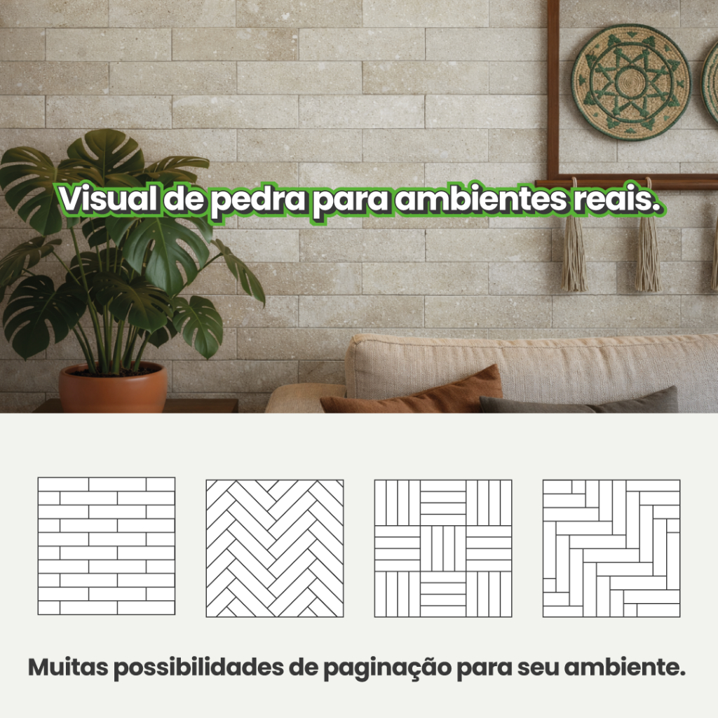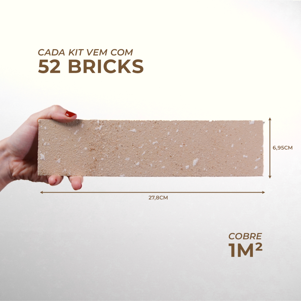 Kit 52 Peças Placa 3d Tijolinho Autocolante De Parede Pedra Relevo Lavável Auto Adesiva Meu Rodapé Cor Areia