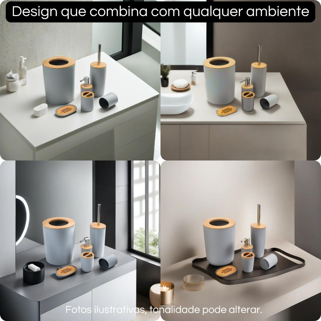 Kit Banheiro Bambu 6 peças Conjunto Acessórios Lavabo Completo 029 Saboneteira Lixeira Dispenser