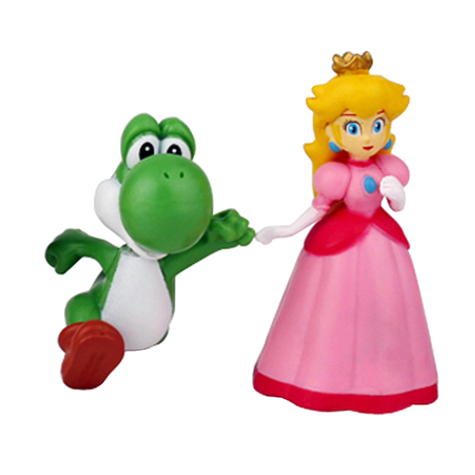 Kit 6 Bonecos Mario Bros Action Figure Mario, Luigi, Peach, Toad, Doney kong