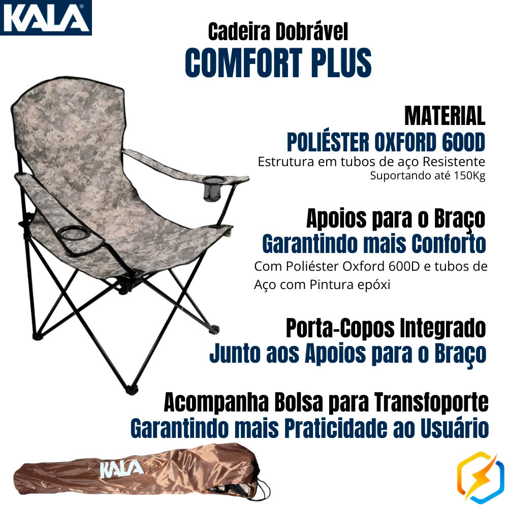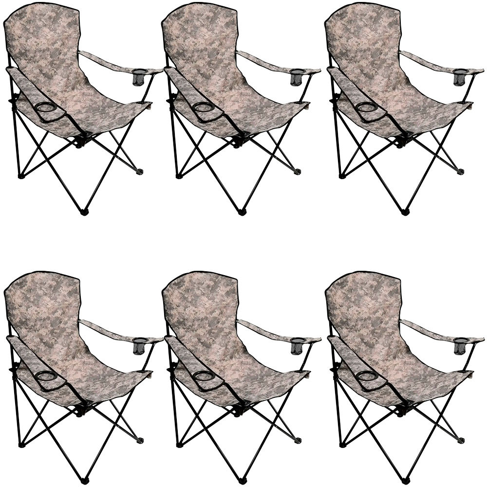 Kit 6 Cadeiras Camufladas Dobráveis Kala Porta-Copos Integrados Tecido Oxford Bolsa para Transporte