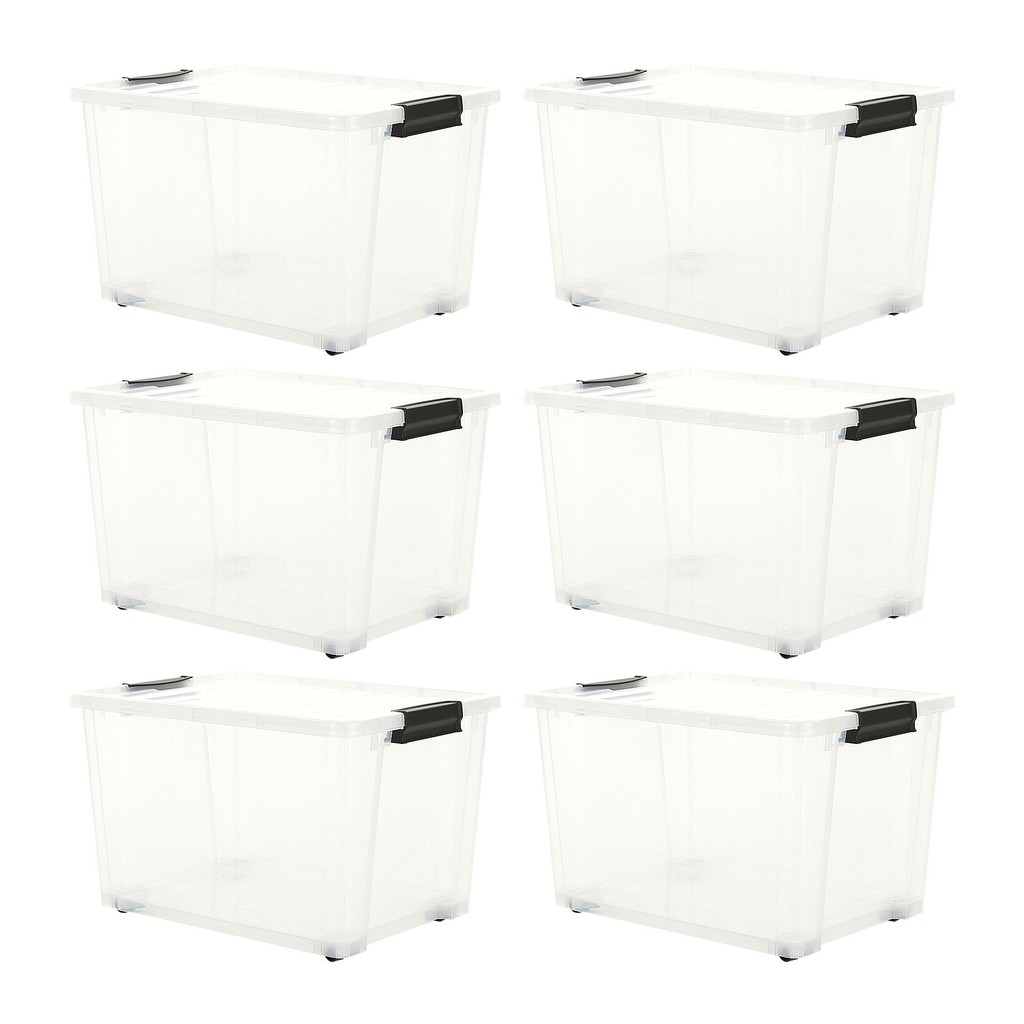 Kit 6 Caixas Organizadoras 40 Litros Reforçada Com Rodas e Travas na Tampa - Life Box