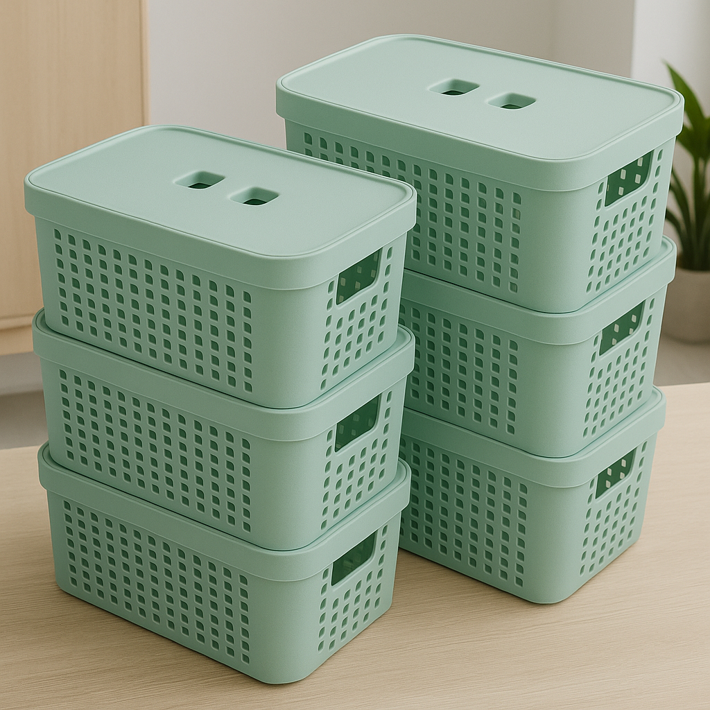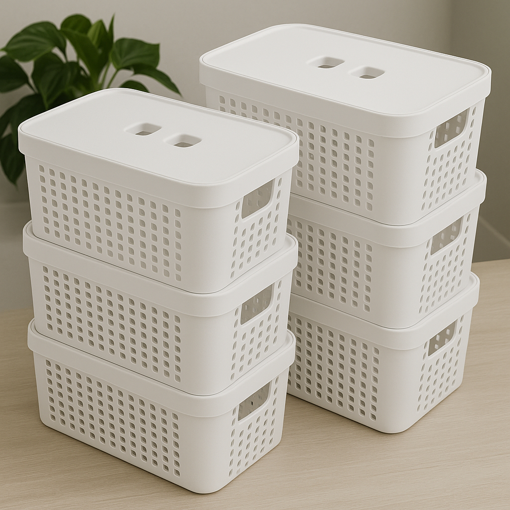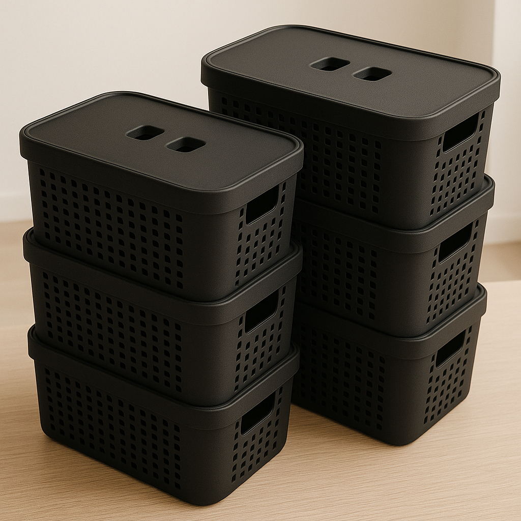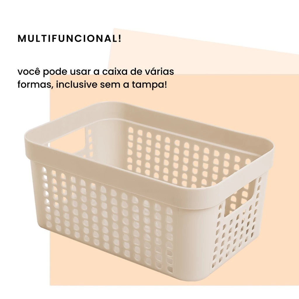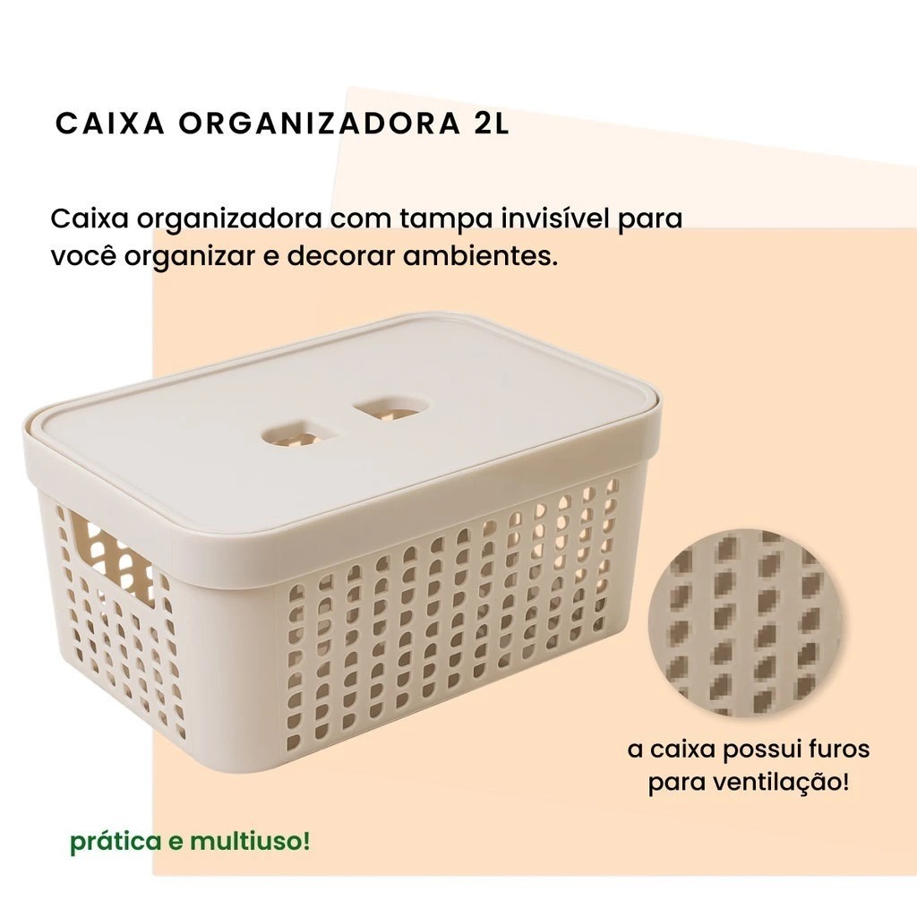 Kit 6 Caixas Organizadoras Com Tampa 2 Litros Cesto Grande em Plástico
