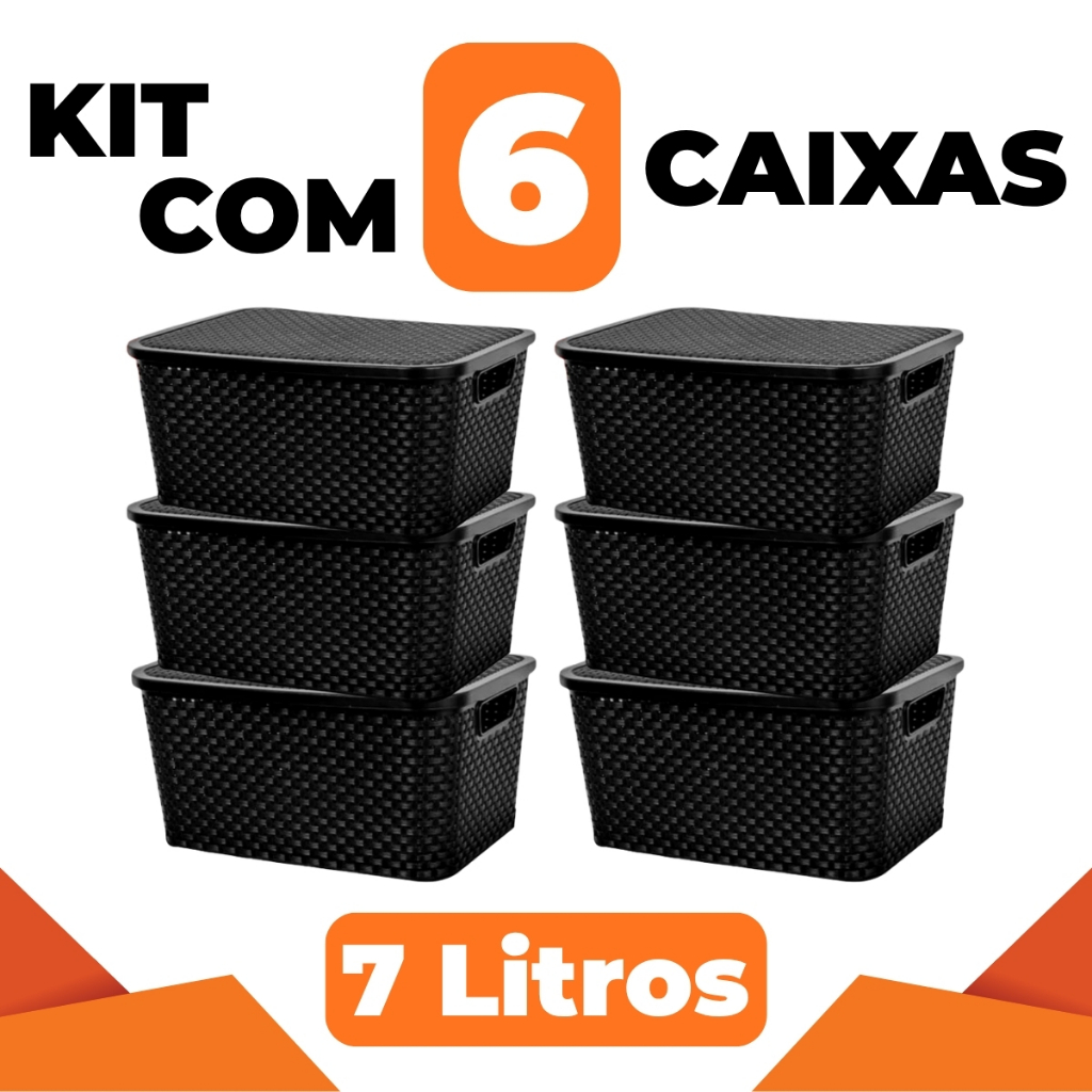 Kit 6 Cesto Caixa Organizadora Rattan 7 Litros Multiuso Preto