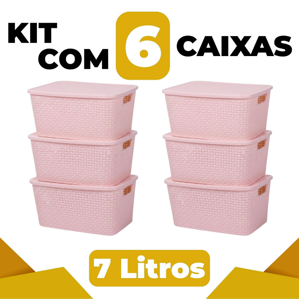 Kit 6 Cestos Rattan 7L com Tampa Organizadores Coloridos Multiuso