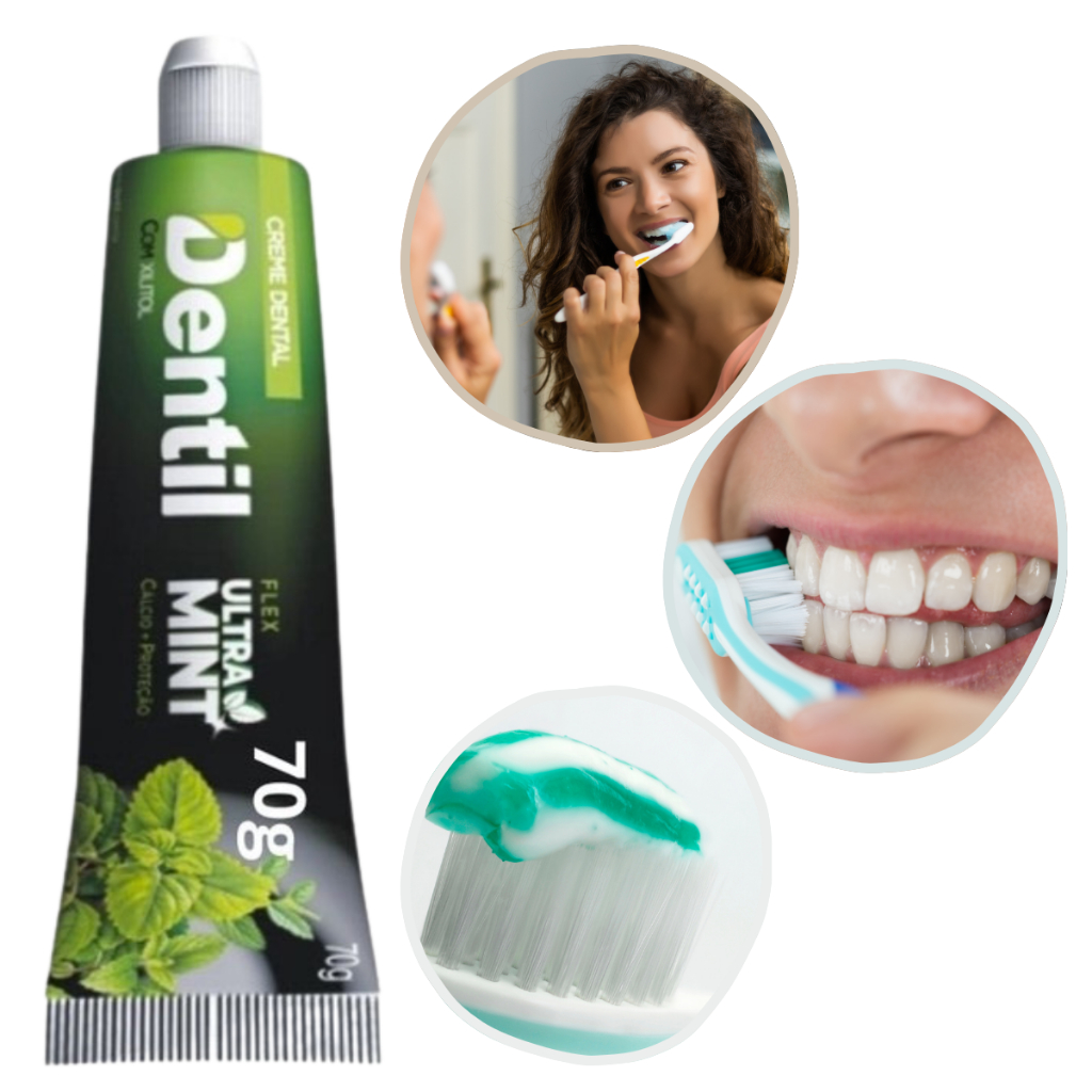 Kit 6 Creme Dental Dentil Ultra Mint Com Xilitol Sem Flúor Menta Refrescância Total