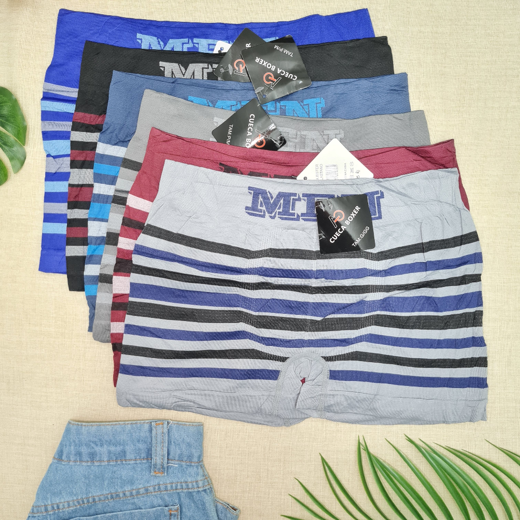 Kit 6 Cuecas Masculinas Box Microfibra Adulto Lisa Boxer