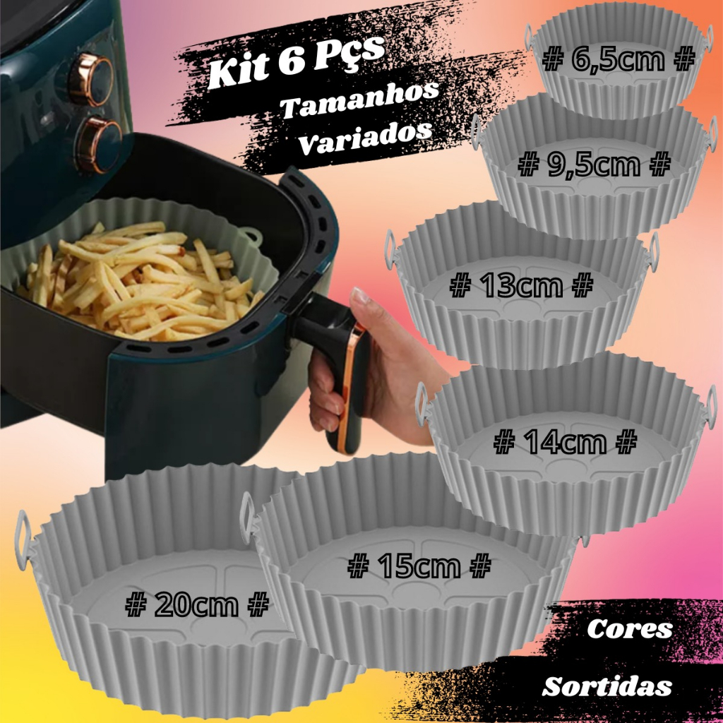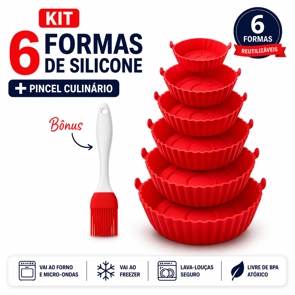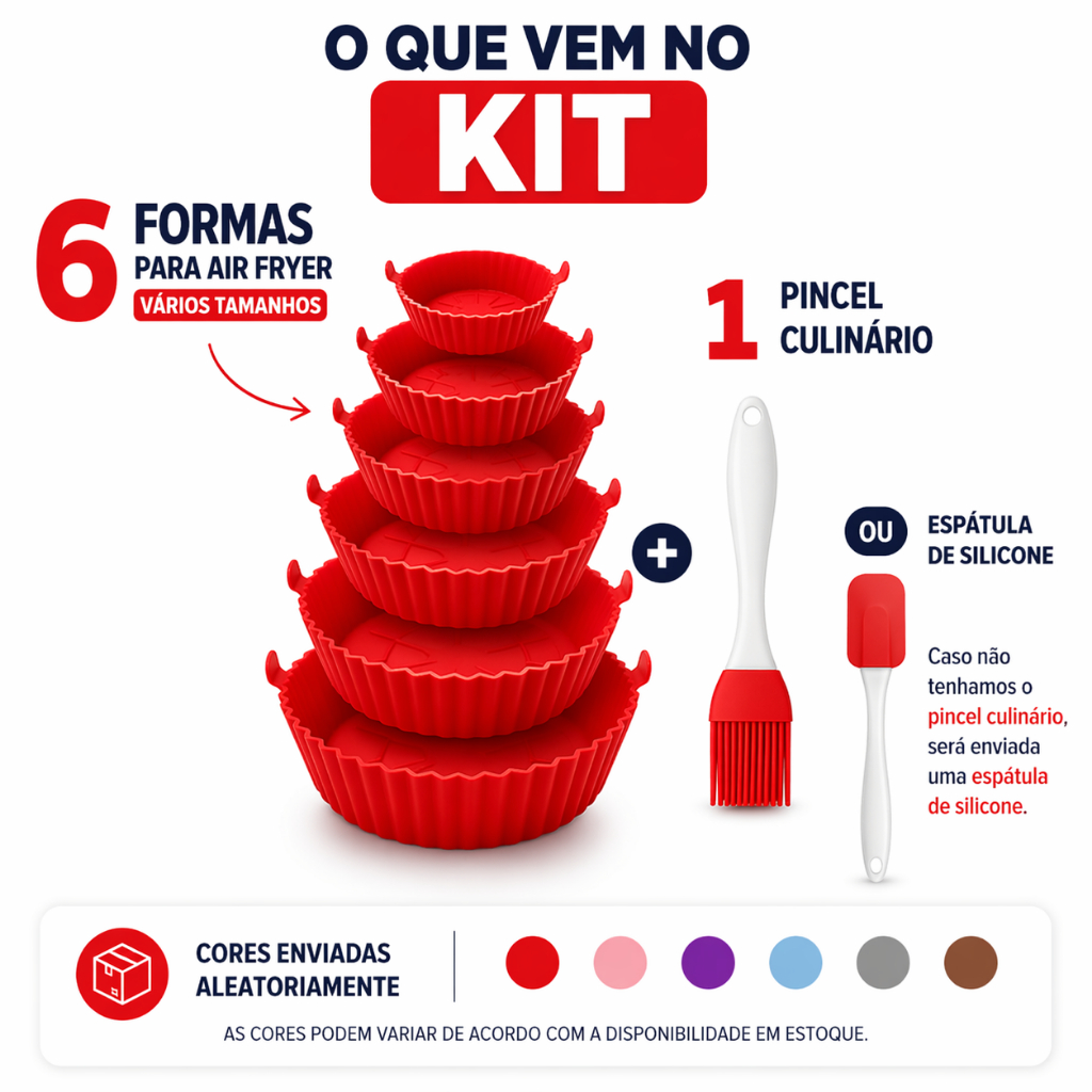 Kit 6 Forma Para Air Fryer Silicone Antiaderente Forno Microondas + Pincel Culinario