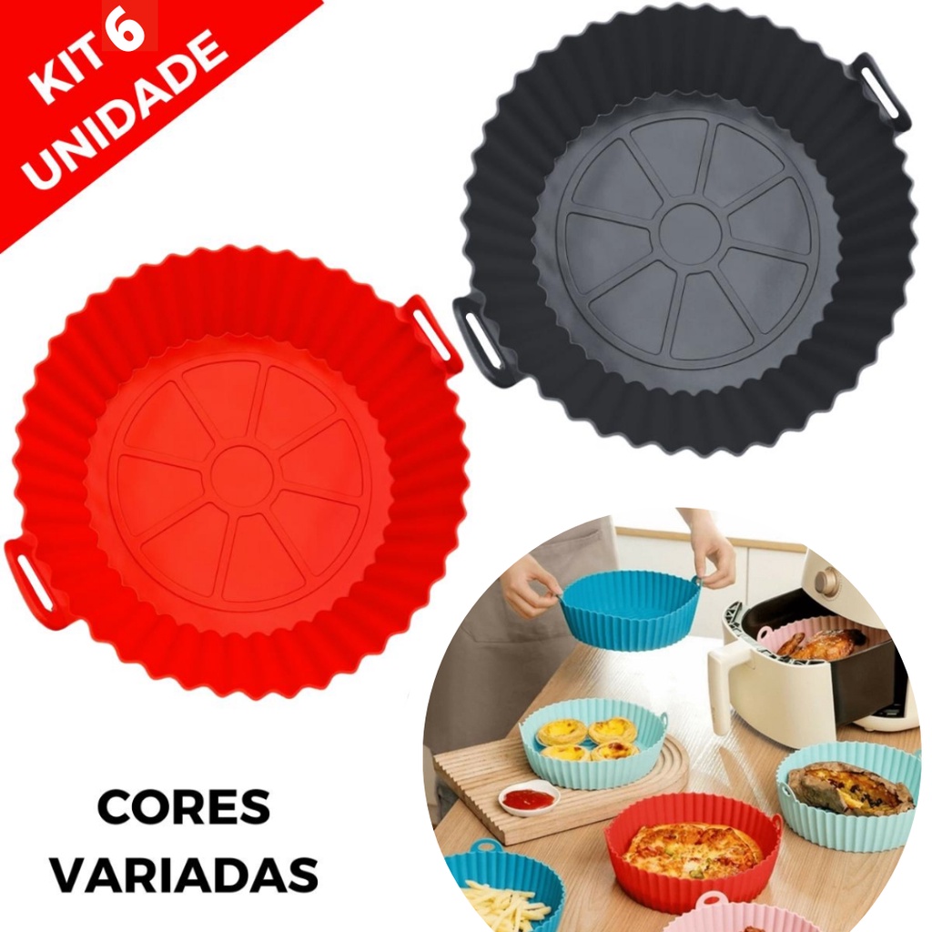 Kit 6 Formas Silicone Panela Antiaderente Air Fryer Assadeira Reutilizável Microondas