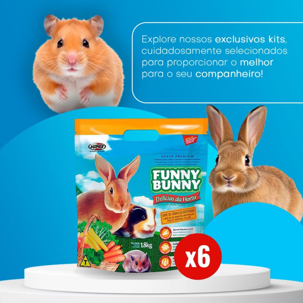 Kit 6 Funny Bunny Delícias da Horta 1,8kg Ração para Coelhos e Roedores Supra