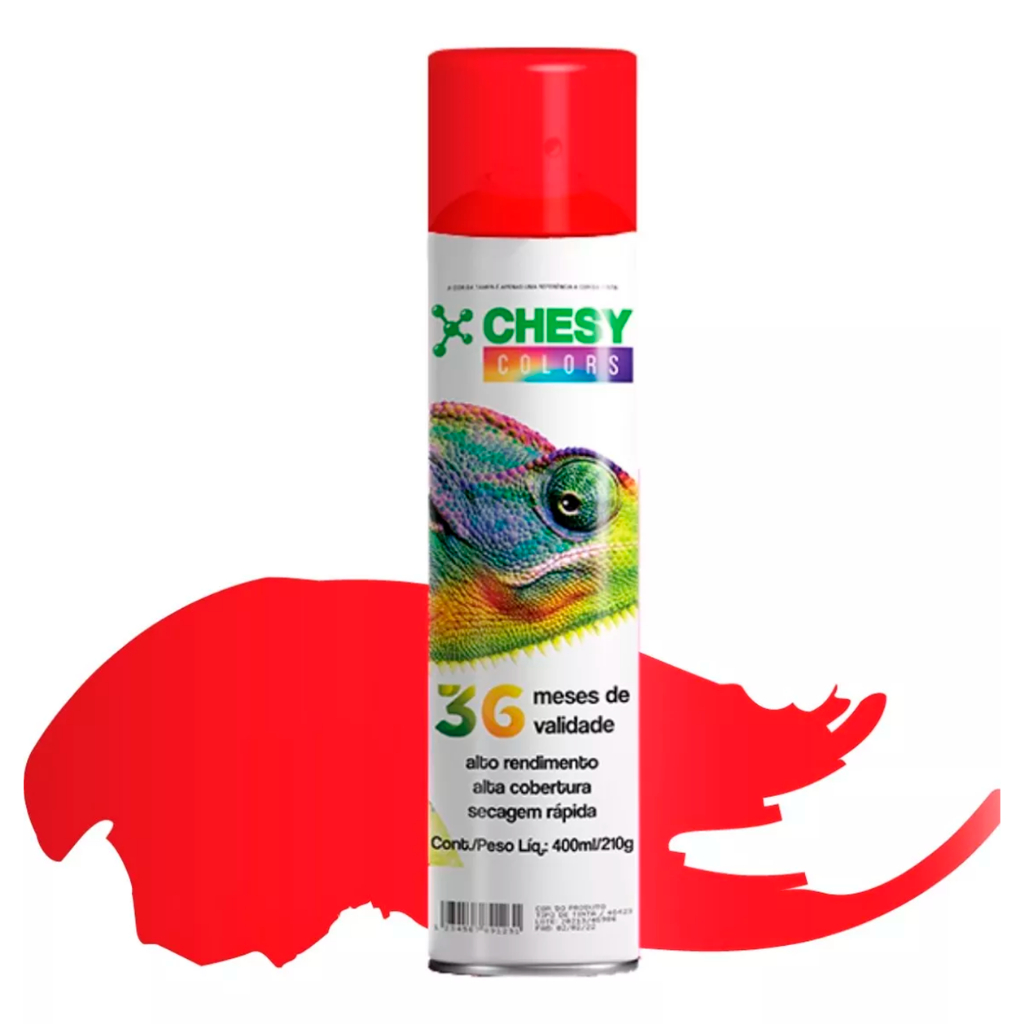 Kit 6 Latas de Tinta Spray Luminosa Vermelho 400ml Chesy