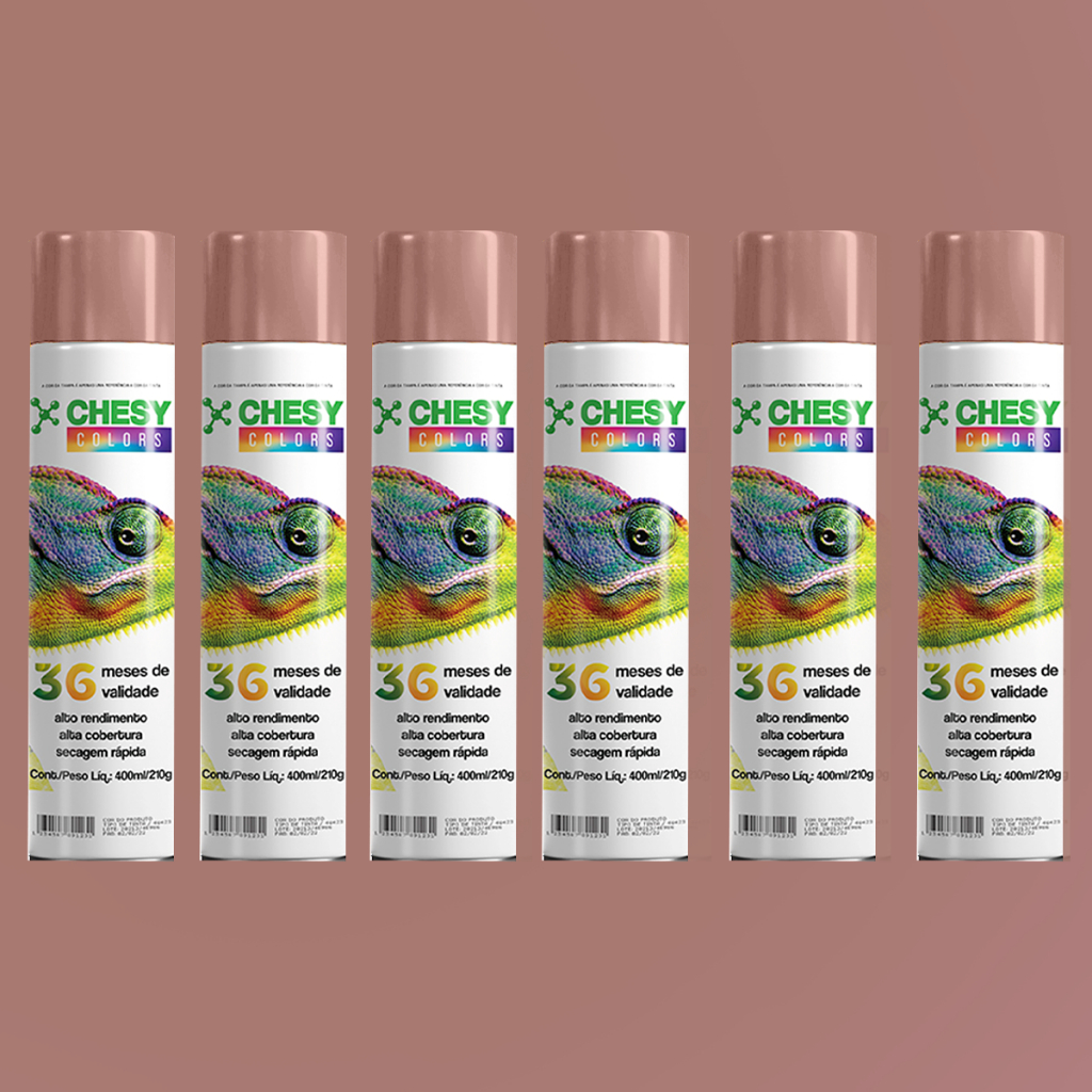 Kit 6 Latas de Tinta Spray Metalico Rose Gold Old 400ml Chesy