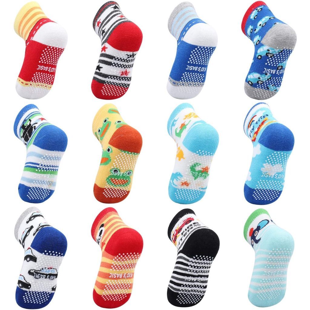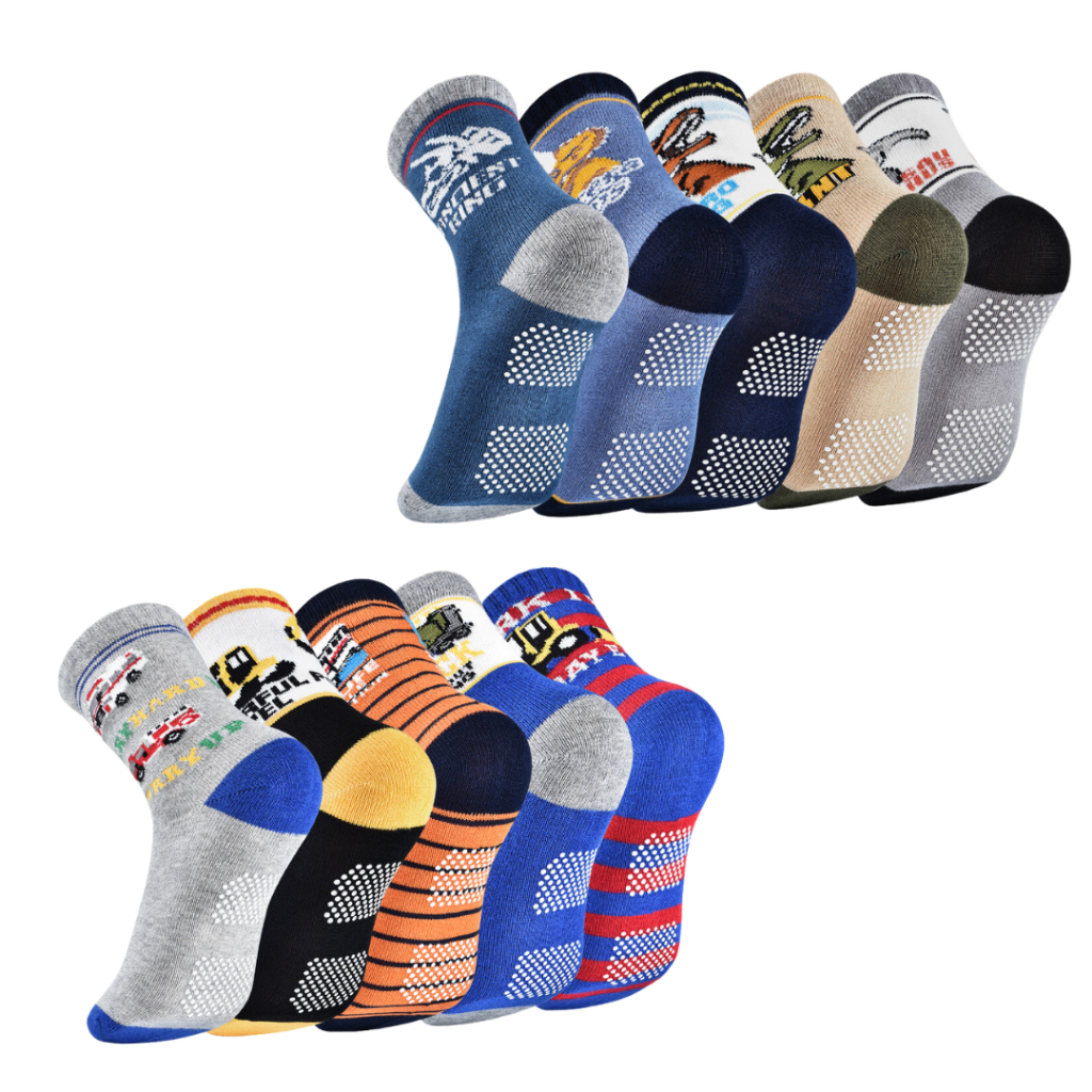 Kit 6 Pares Meia Infantil Menino Cano Médio Super Antiderrapante Estampas Sortidas