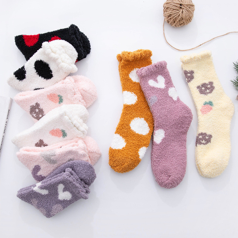 Kit 6 Pares Meias De Felpuda Grossa Para Frio Quente Adulto Femininas Meias De Chão De Outono E Inverno