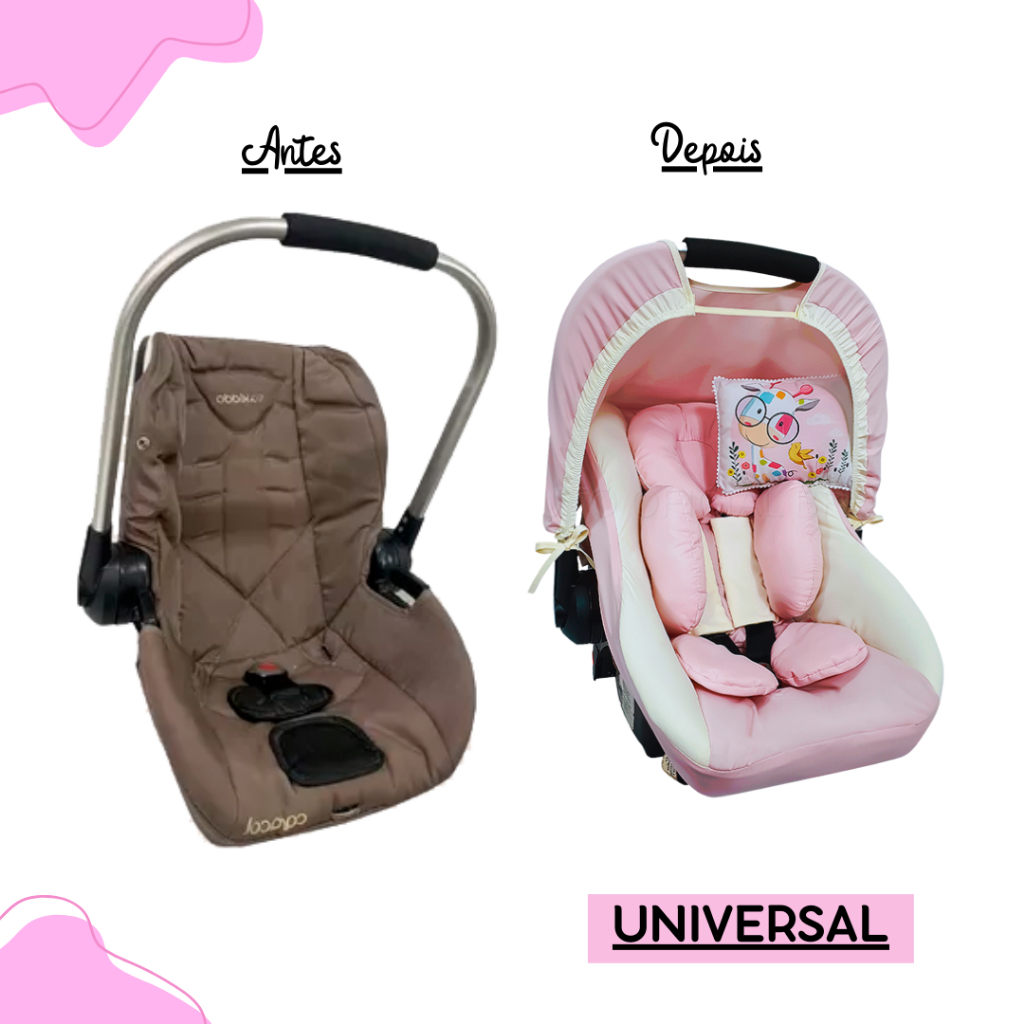 Kit 6 Peças - Capa de Bebê Conforto, Capota, Protetores de Cinto e Redutor e Almofada Estampada