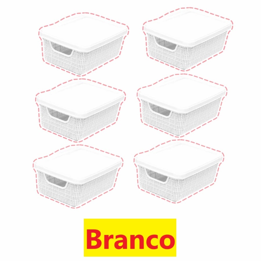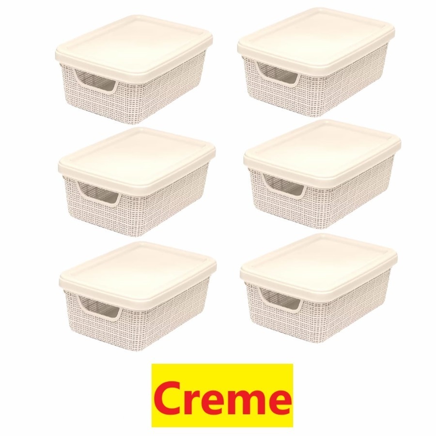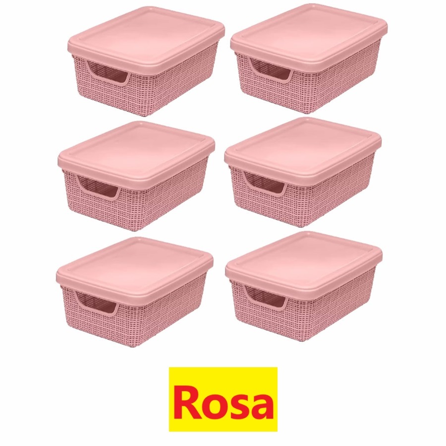 Kit 6 Peças Cesta Caixa Organizadora 1.8L De Objetos Organizadora Com Tampa Juta Multiuso Casa Armario Sala