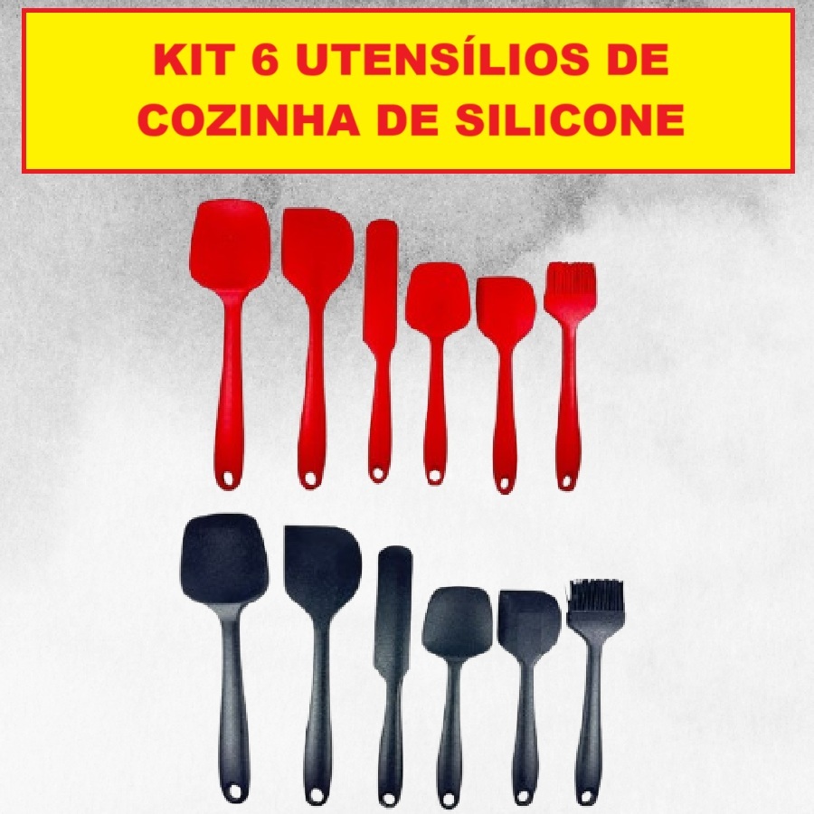 Kit 6 Utensílios Silicone Pão Duro De Cozinha Vermelho Ou Preto Flexível Útil Durável