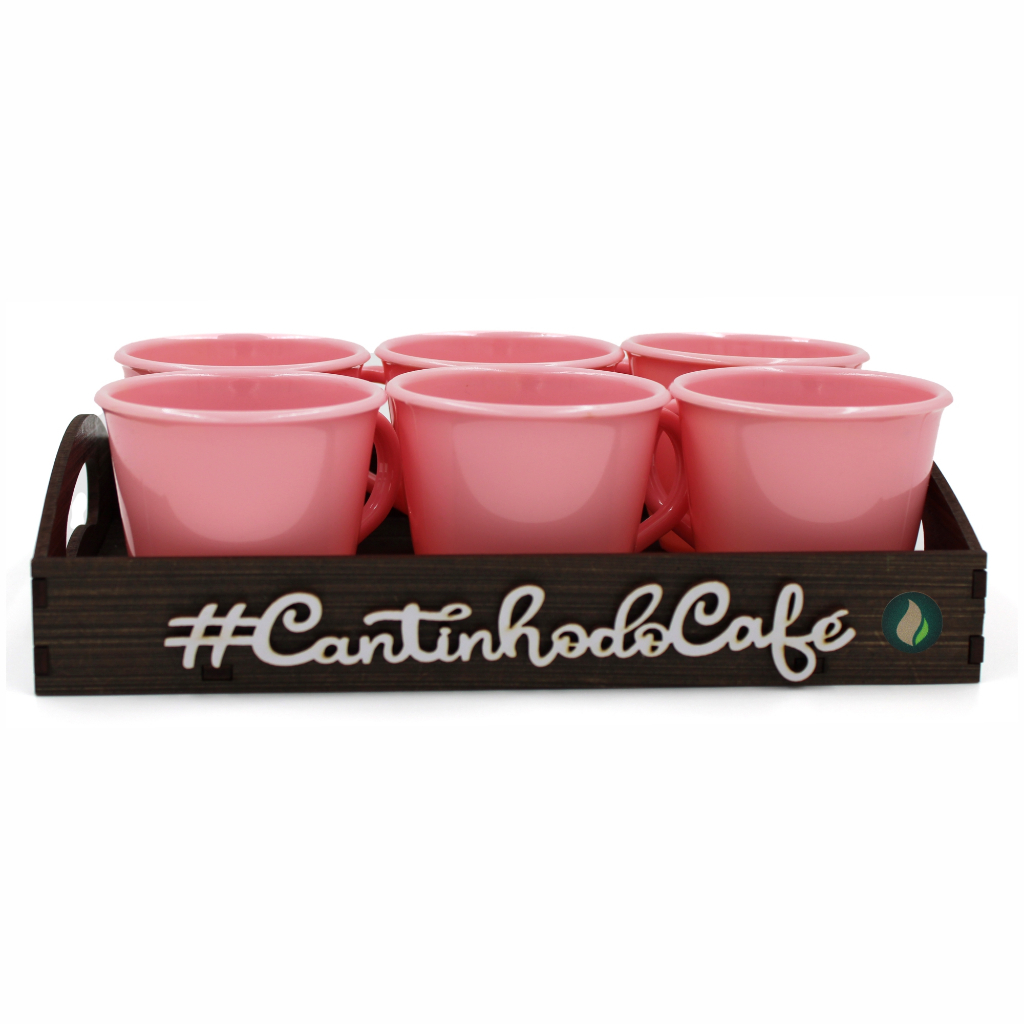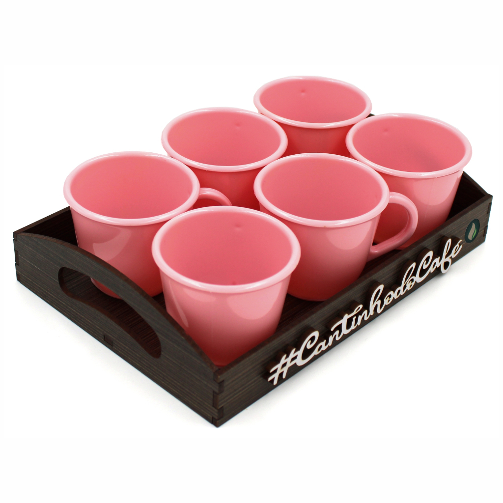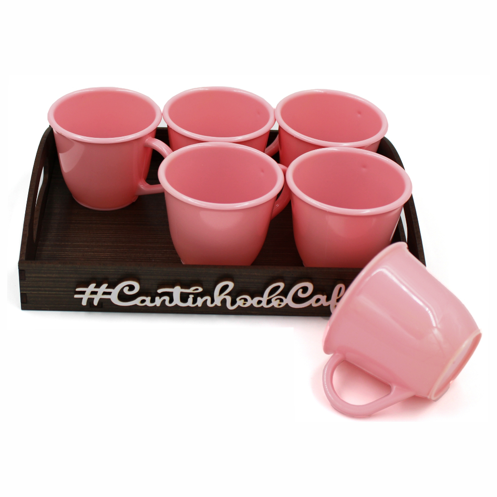 Kit 6 Xícaras Acrílica "Rosa" Com Bandeja Cantinho do Café