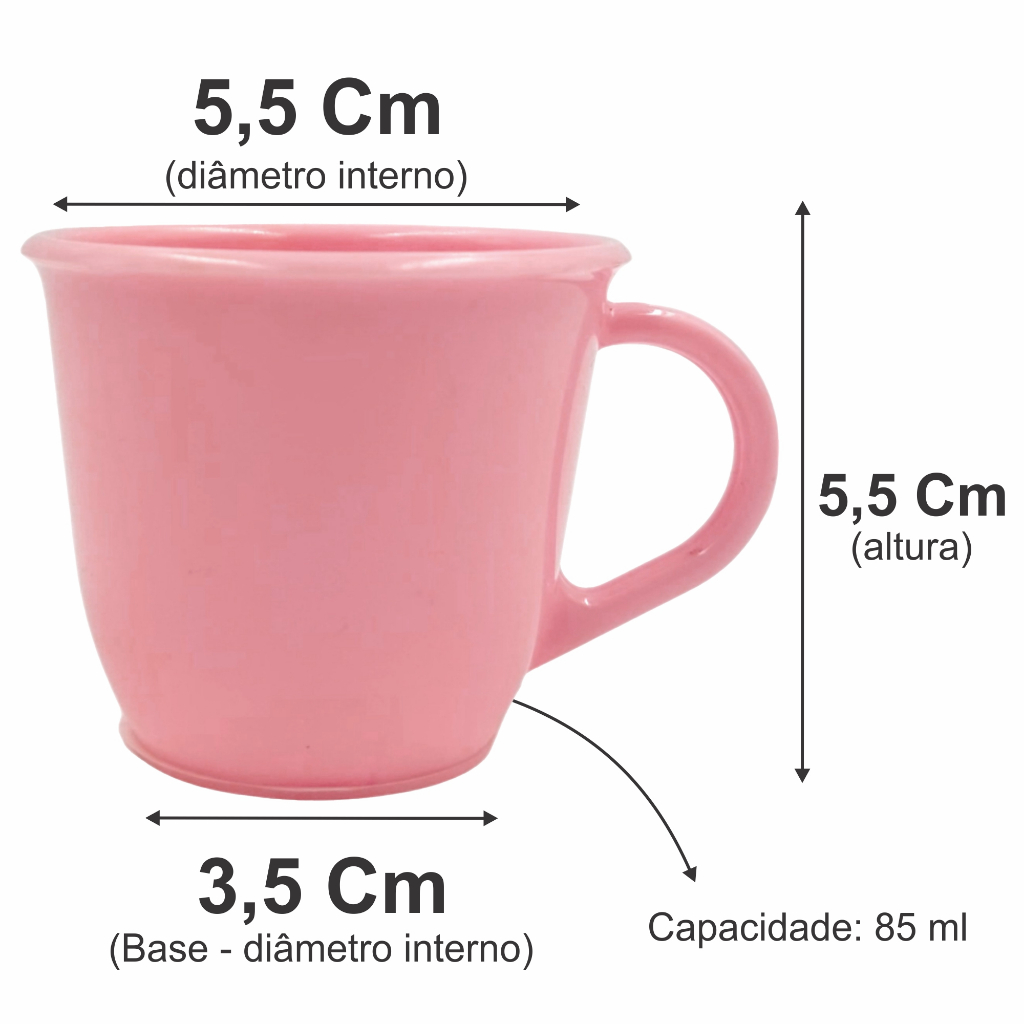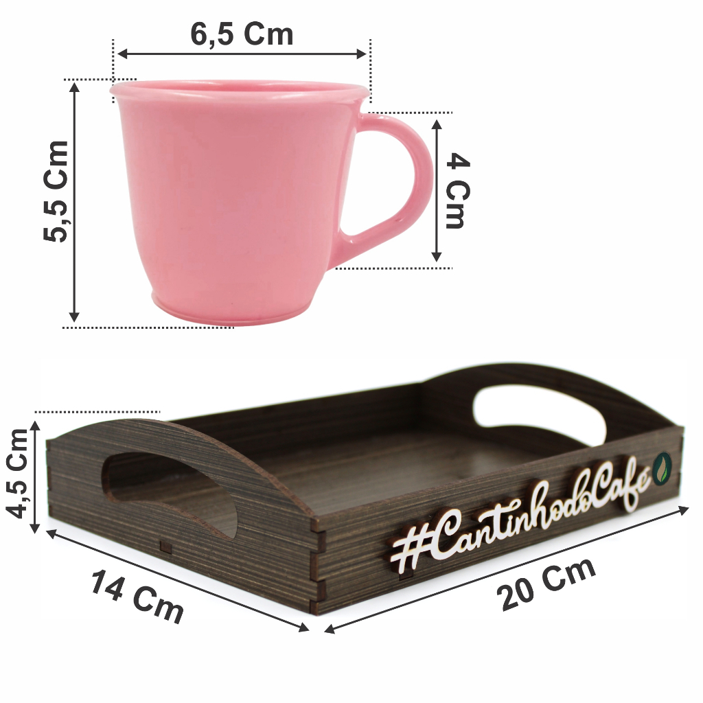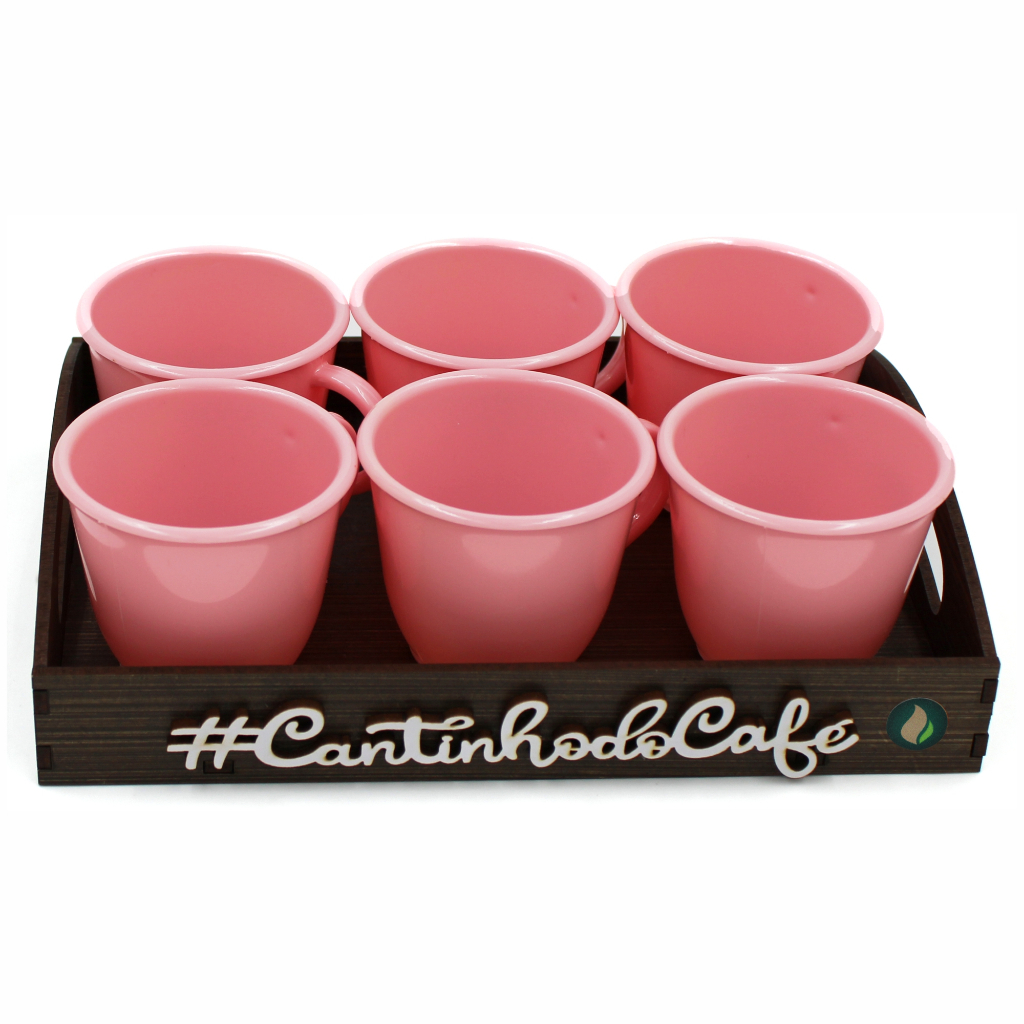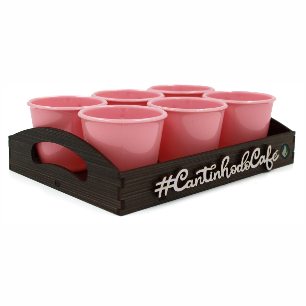 Kit 6 Xícaras Acrílica "Rosa" Com Bandeja Cantinho do Café