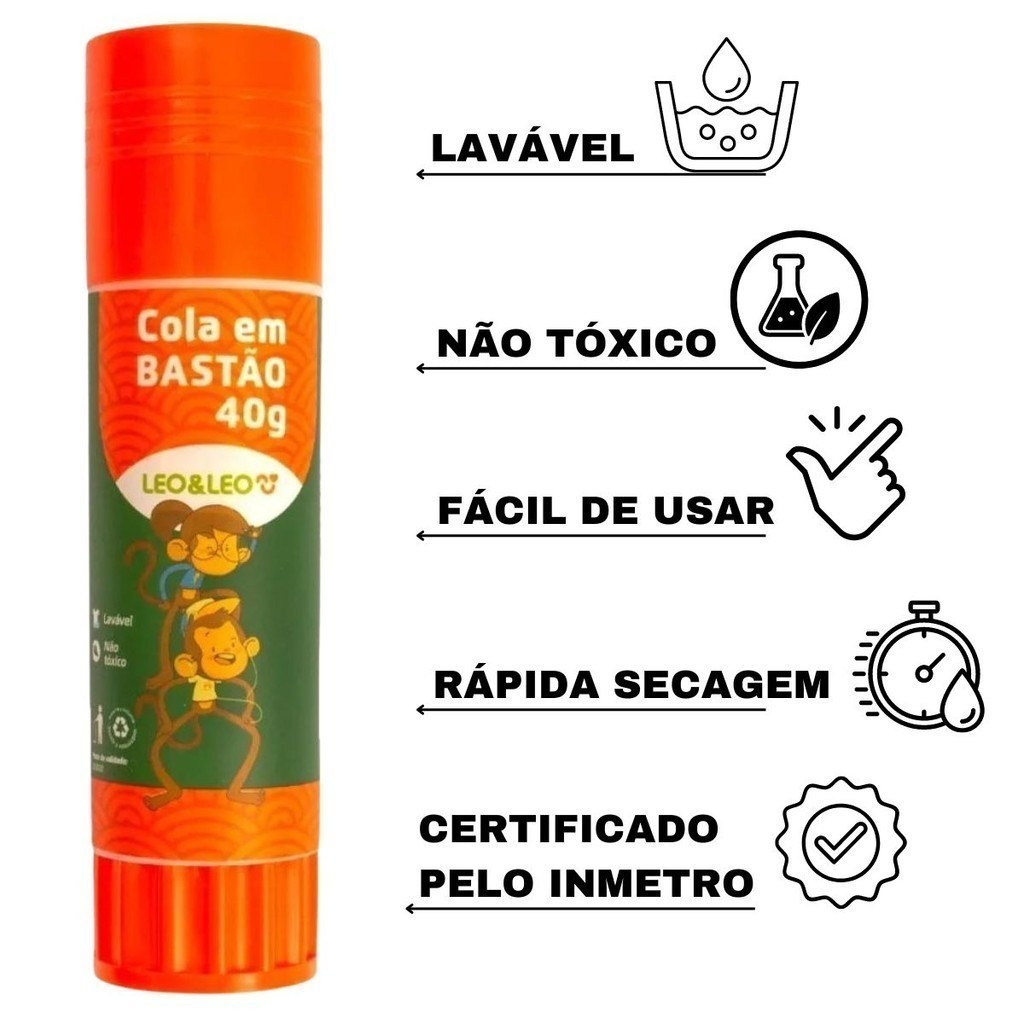 Kit 6 ou 12 Colas Bastão Leo&Leo Material Escolar Lavavel Escritorio Não Toxico Infantil