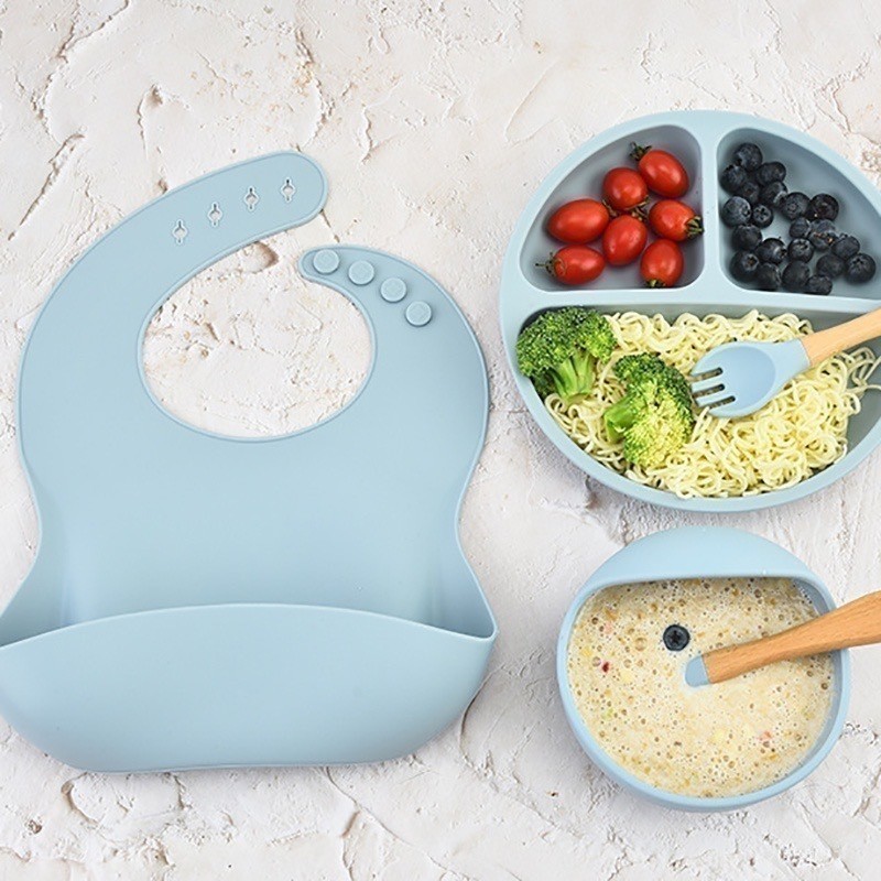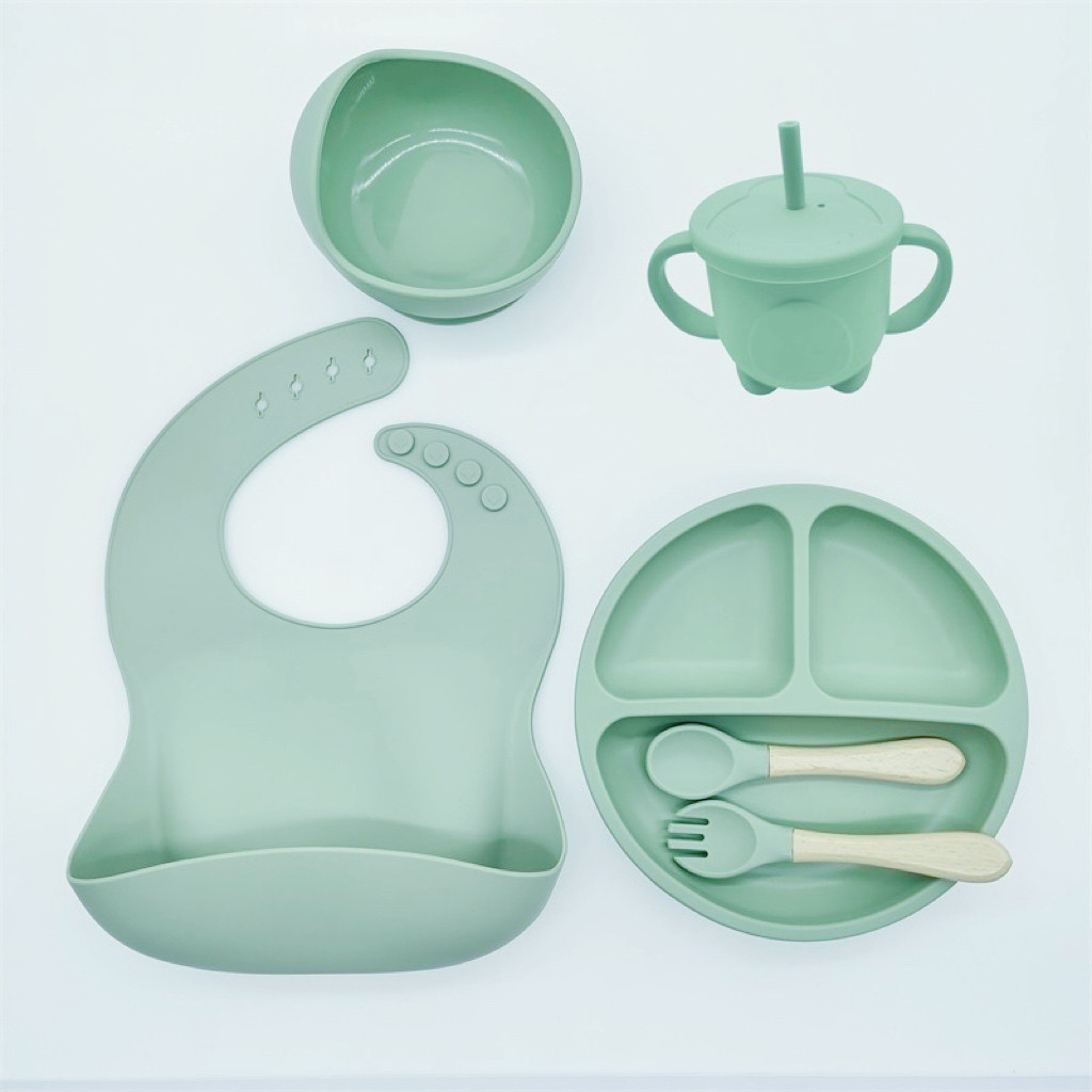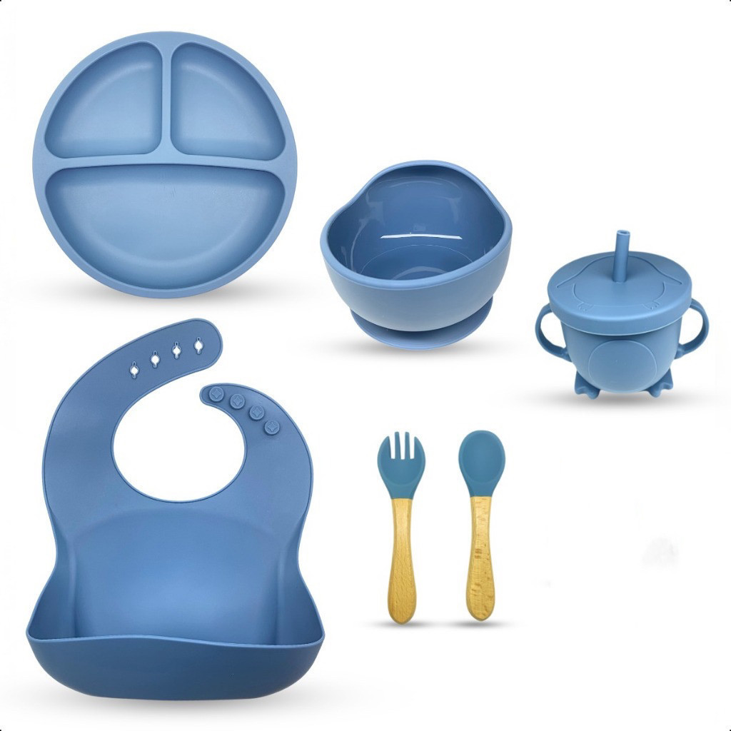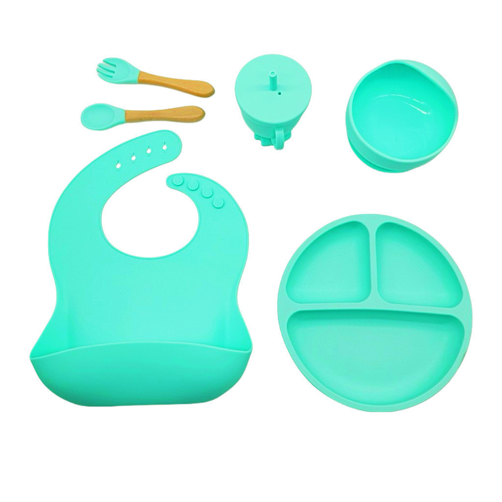 Kit 6 pecas Talheres do Bebê ConjuntoDe Silicone Para Bebês Com Tigela De ventosa Sippy Cup Bibs