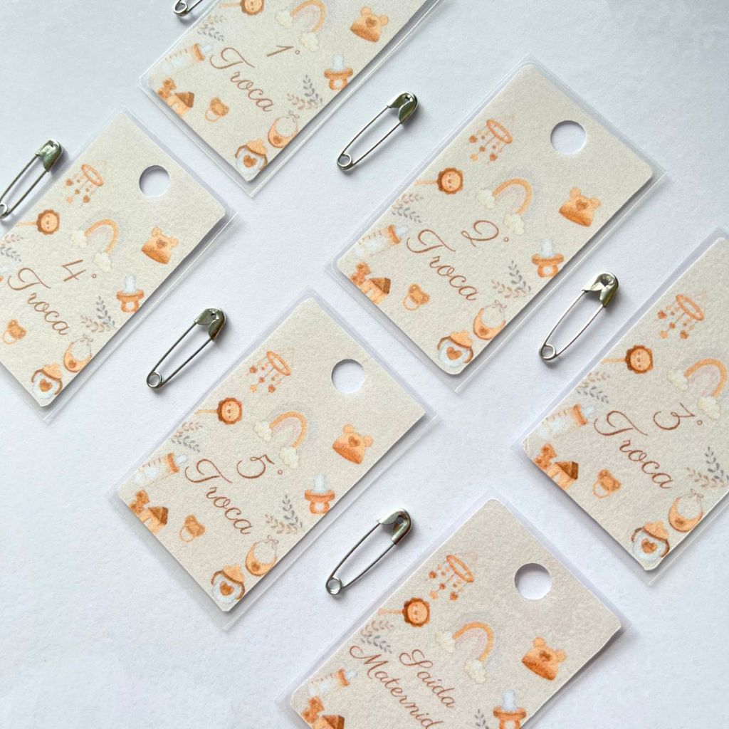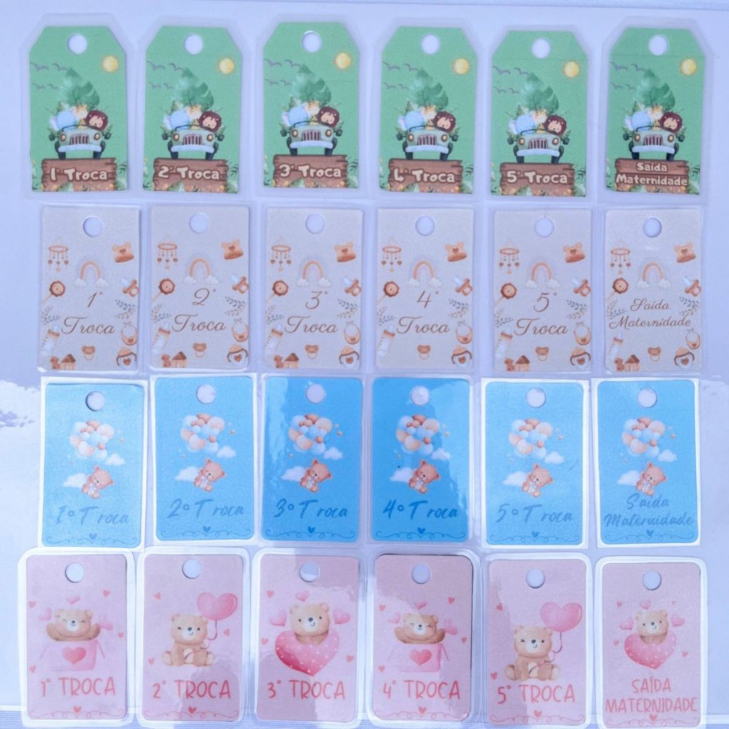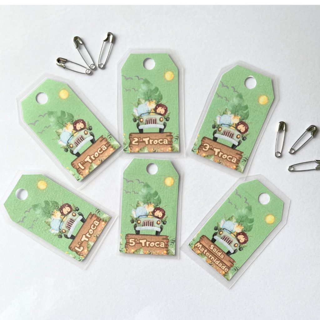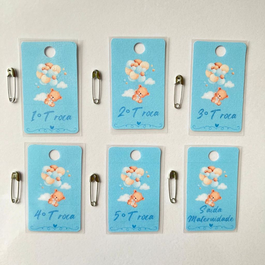Kit 6 tags indicação de troca para saquinho maternidade Safari Ursinho Ursinha Nuvem (Somente TAG)