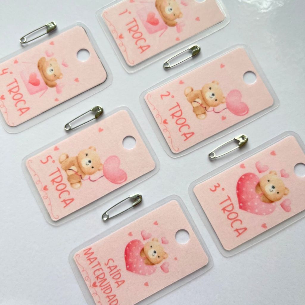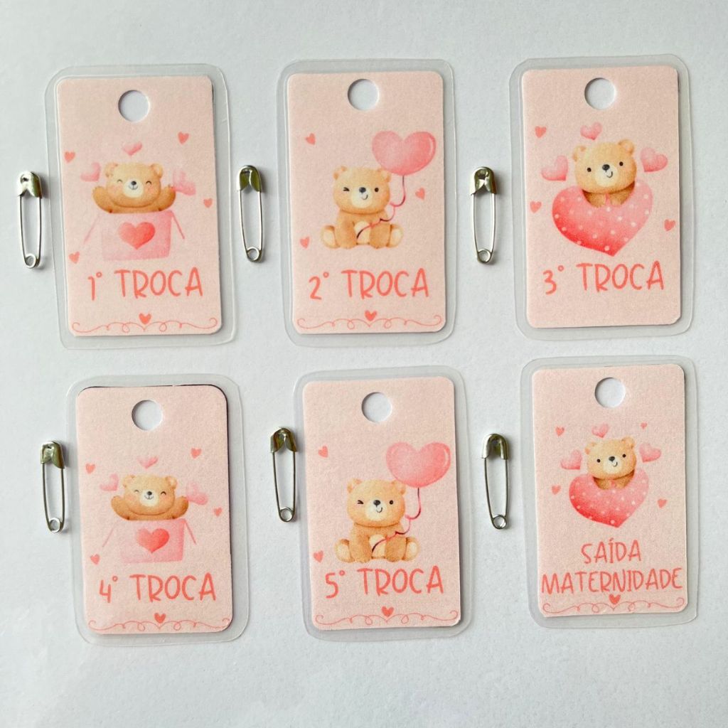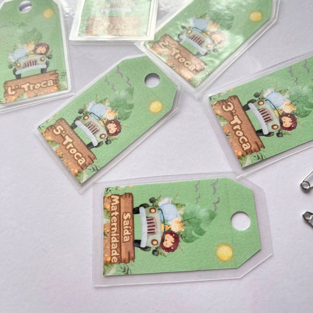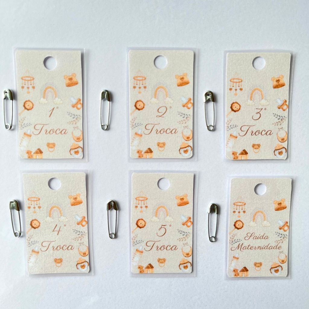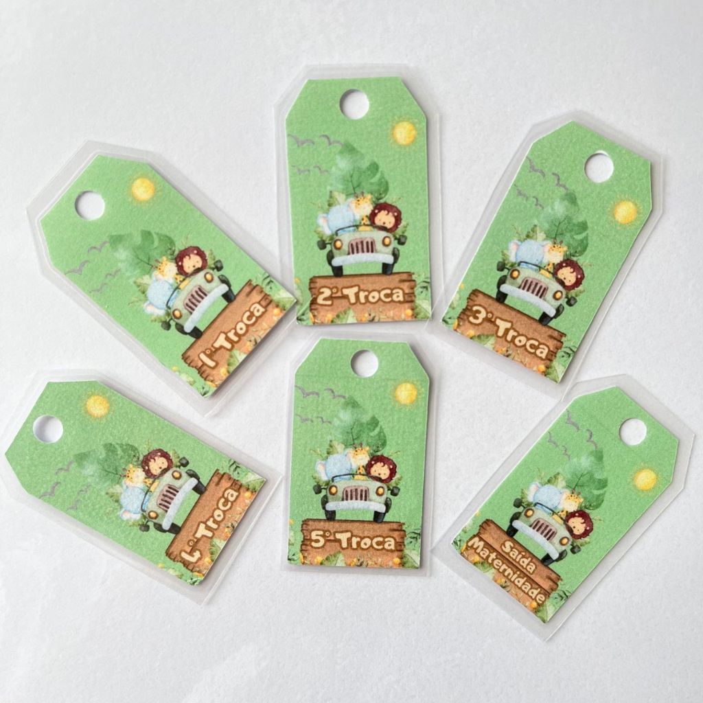 Kit 6 tags indicação de troca para saquinho maternidade Safari Ursinho Ursinha Nuvem (Somente TAG)