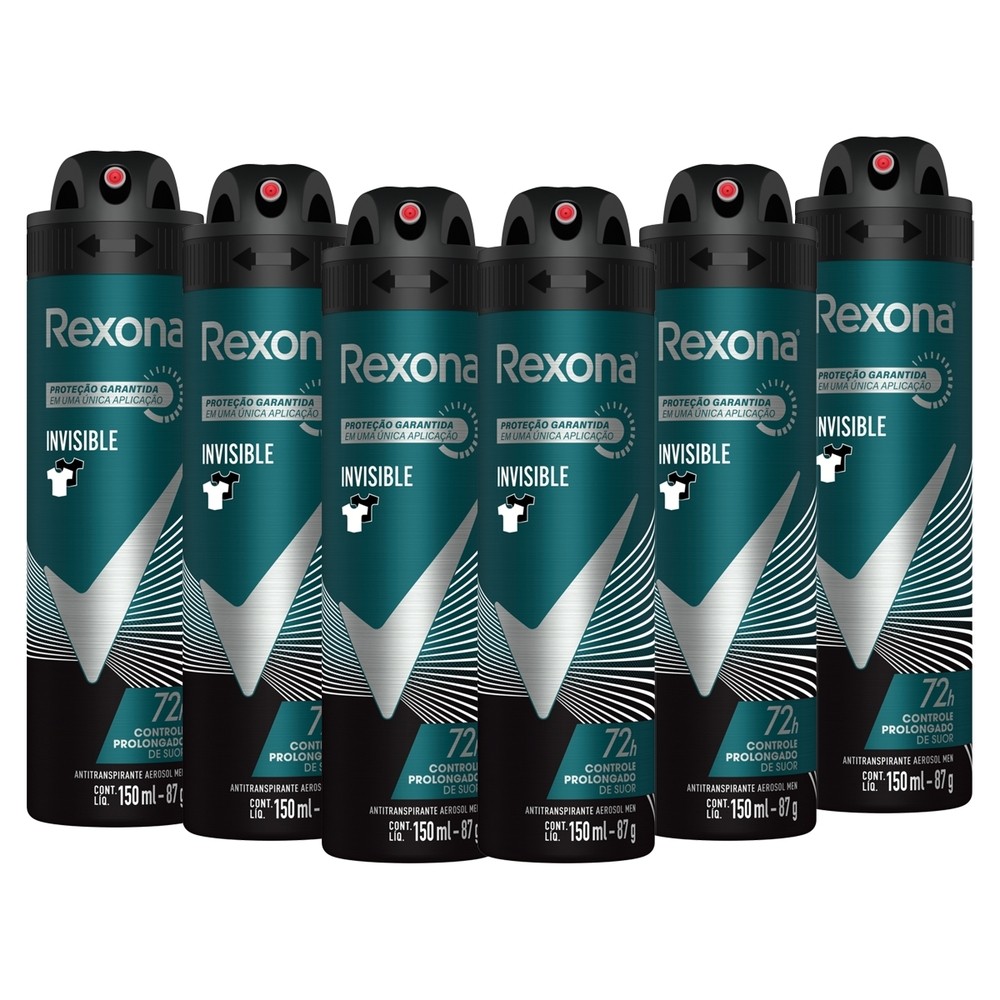 Kit 6 und Desod Aero Rexona Masculino Invisible 150ml