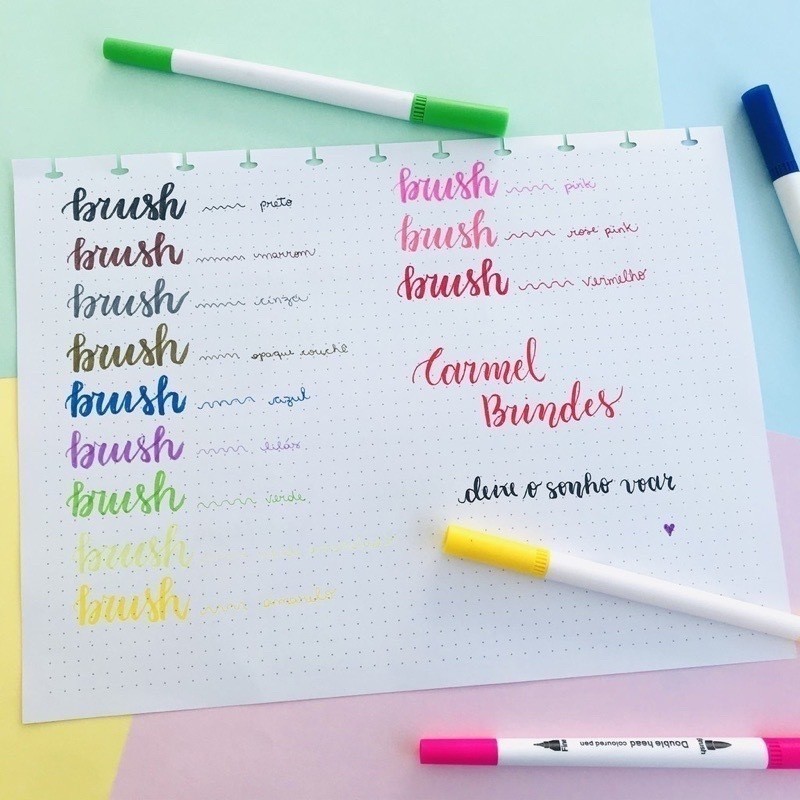 Kit 60 Caneta Brush Ponta Pincel Lettering Duas Pontas