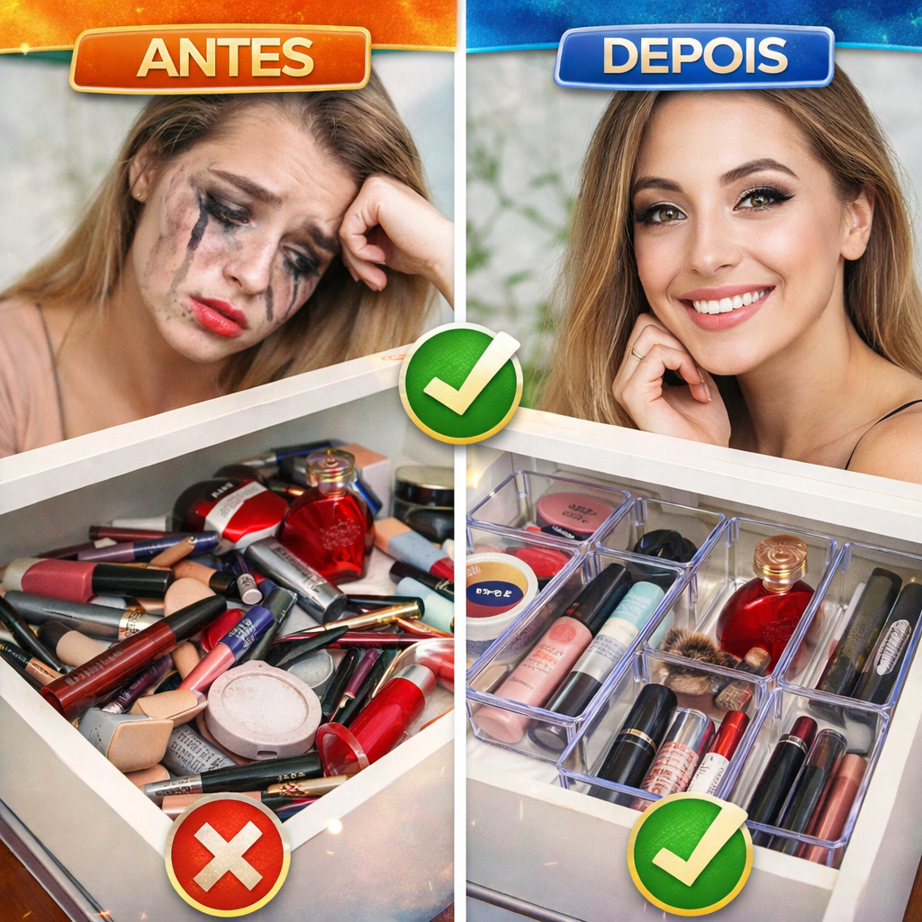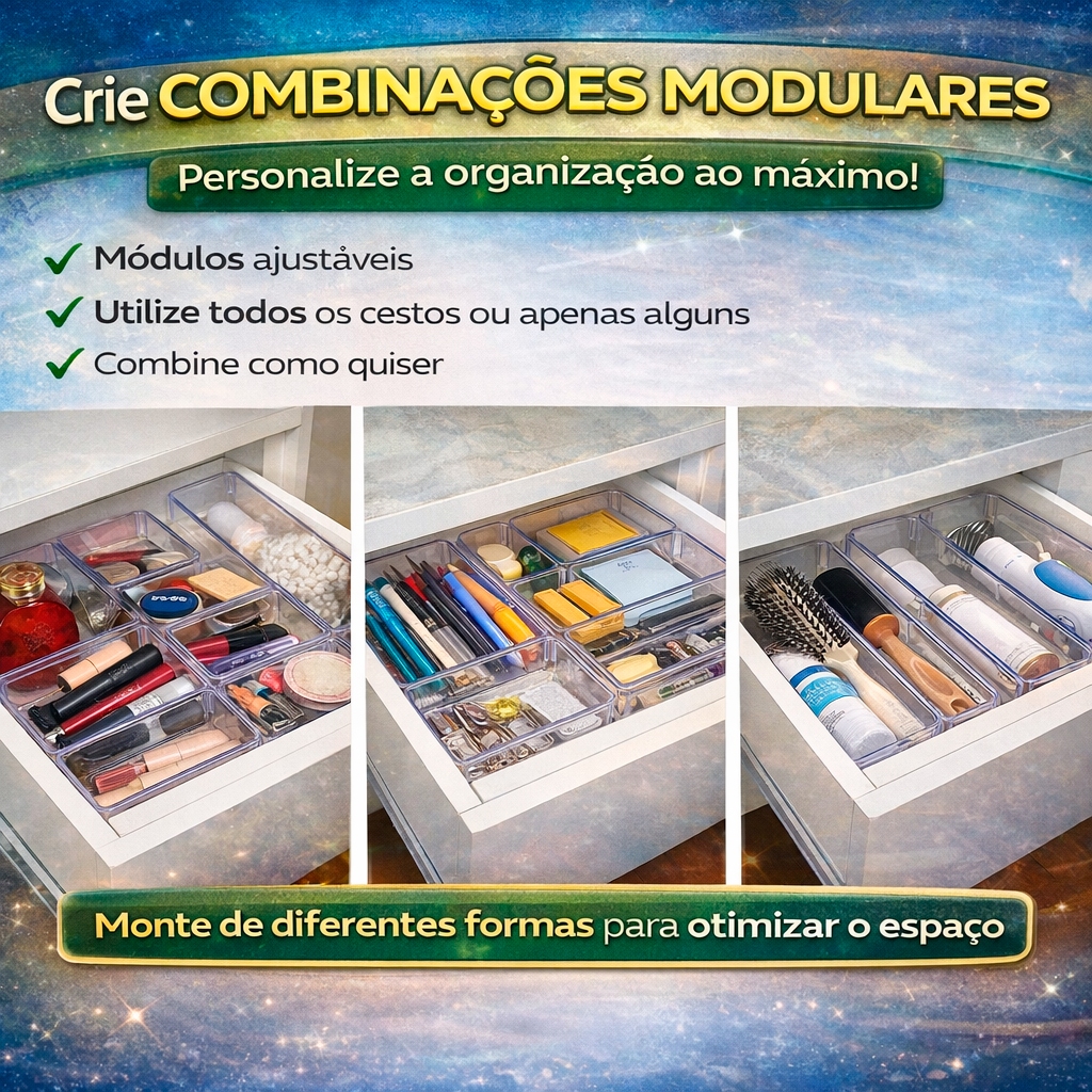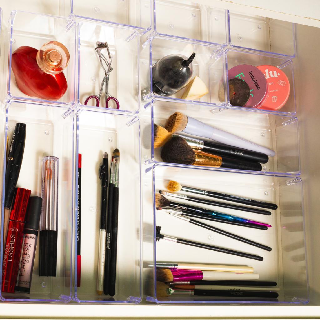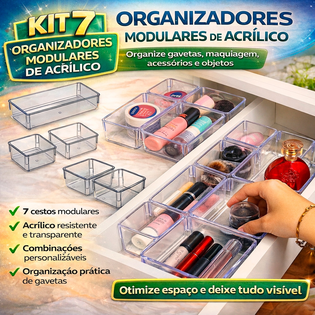 Kit 7 Organizadores de Maquiagem Multiuso Modular Acrílico Cristal para Gavetas