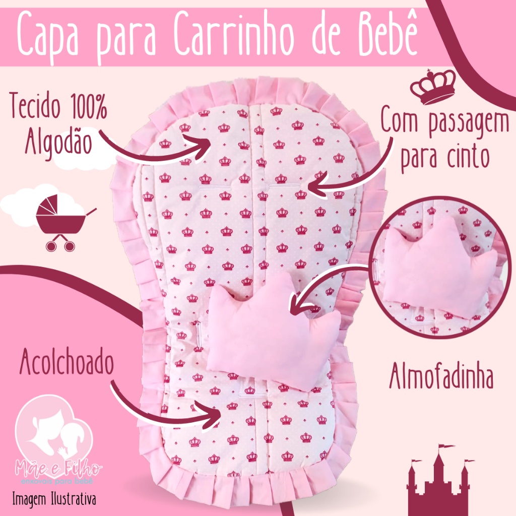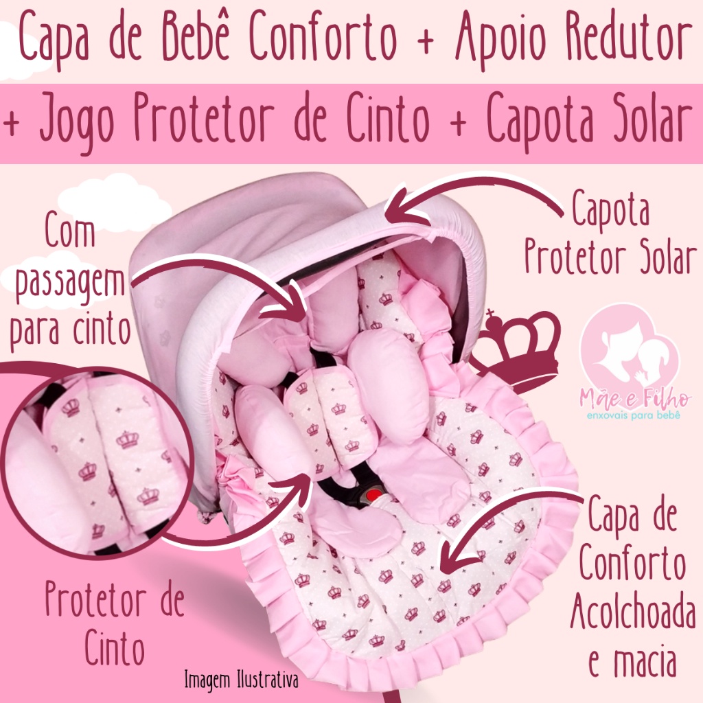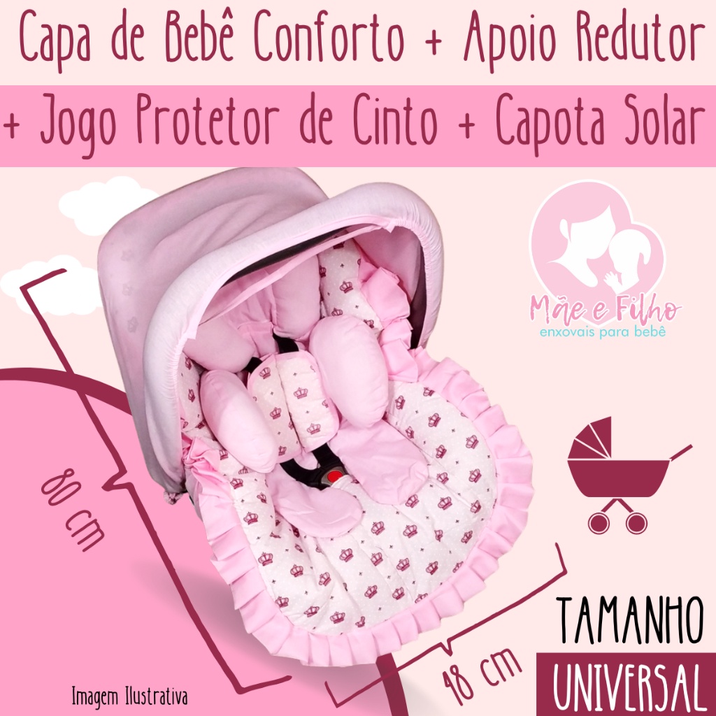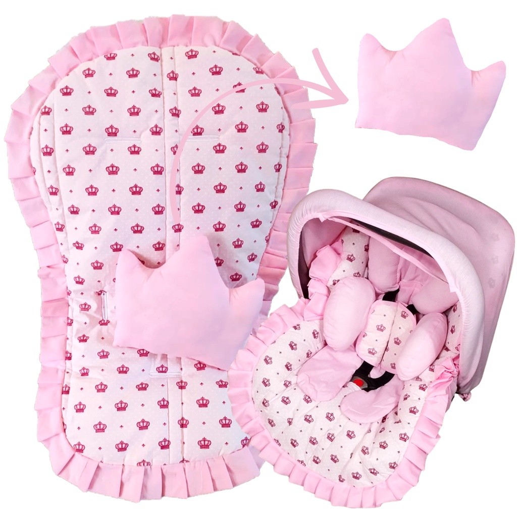 Kit 7 Peças Capa de Bebê Conforto Capa de Carrinho Acolchoada Apoio Redutor Protetor de Cinto Capota