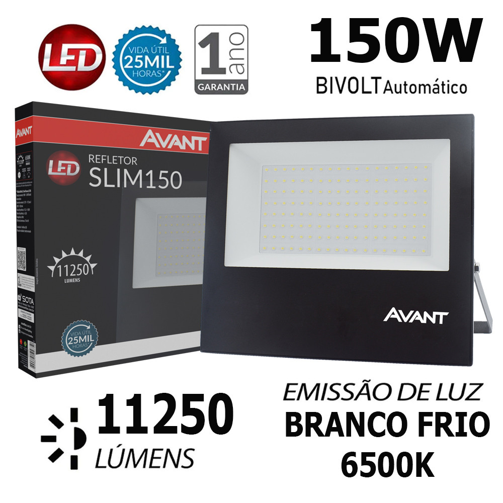 Kit 7 Refletor Led 150w Luz Externa Comercio Branco Frio 6500k Bivolt 127v 220v Avant