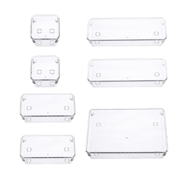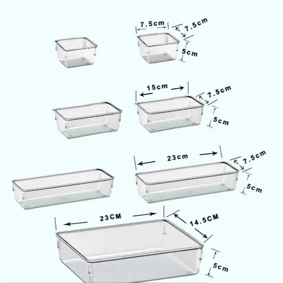 Kit 7 e Kit 14 Organizadores Multiuso para Gavetas, Armários, Geladeiras Potes em Acrílico