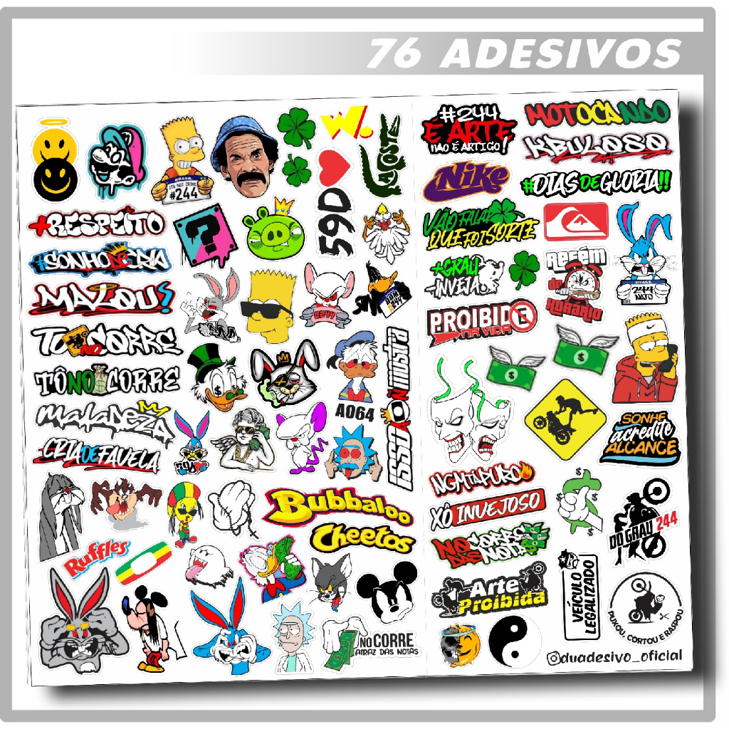 Kit 76 Super Adesivo Para Moto Bike Carro Alta Resolução Mega Cartela Alta Resolução