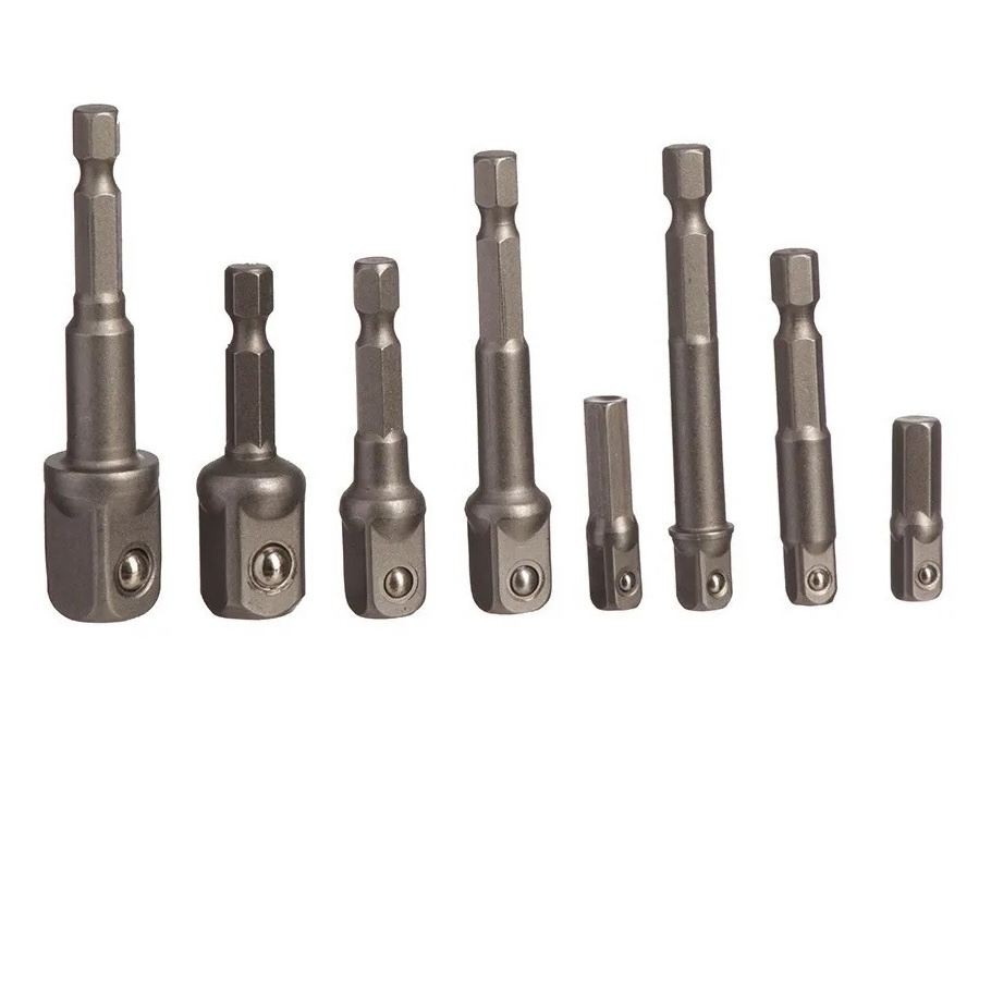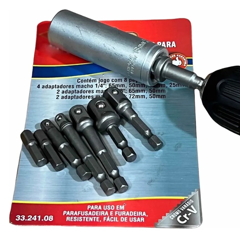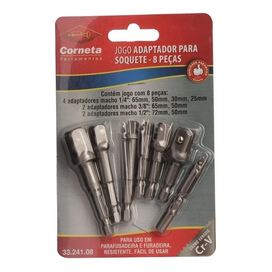 Kit 8 Adaptador Soquete Parafusadeira Furadeira 1/4 3/8 1/2 Corneta