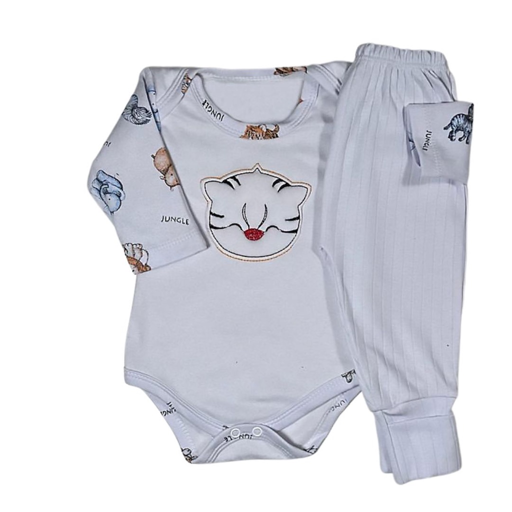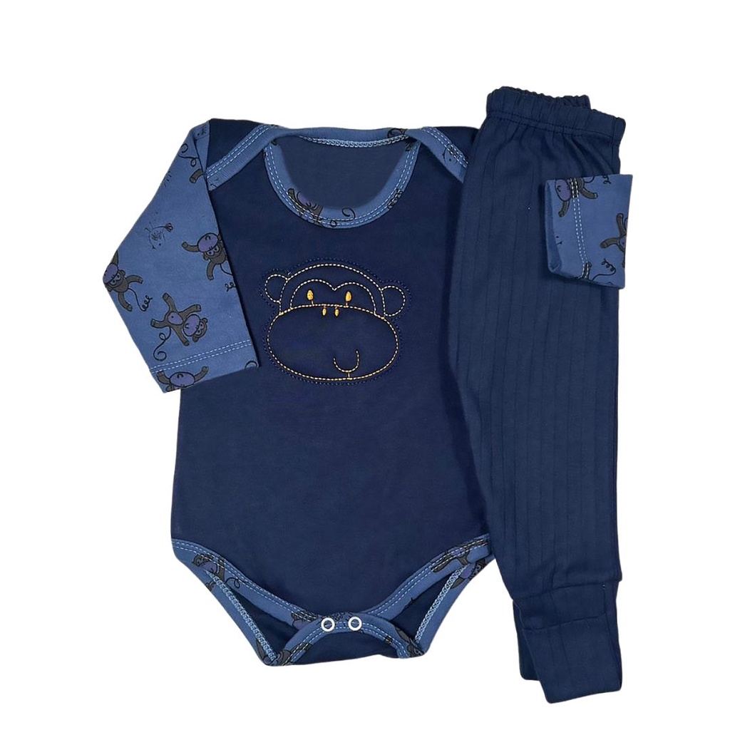 Kit 8 Peças Body Bebe Bordado E Mijão Canelado Vira Pé Menino 100% ALG