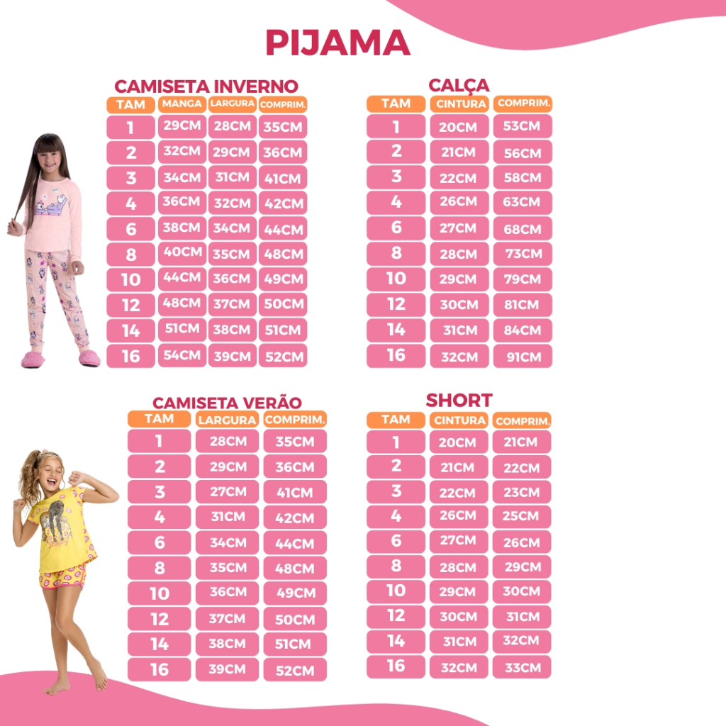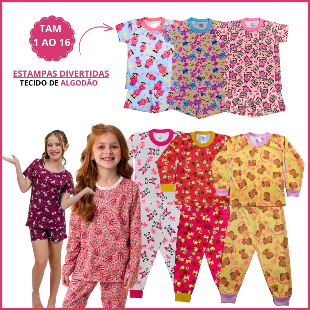 Kit 8 Peças Pijama Menina Inverno e Verão 2 Pijama Verão e 2 Pijama Infantil Inverno 1 ao 16 Algodão