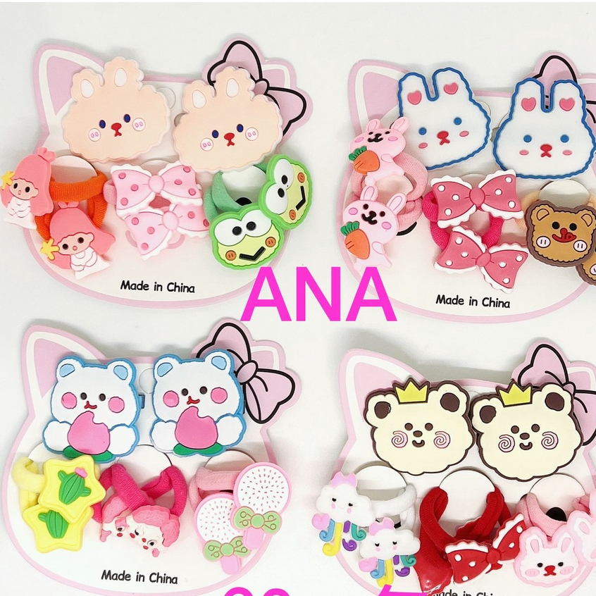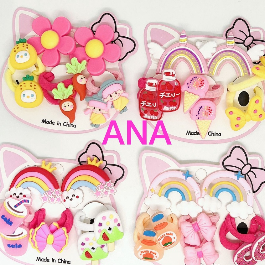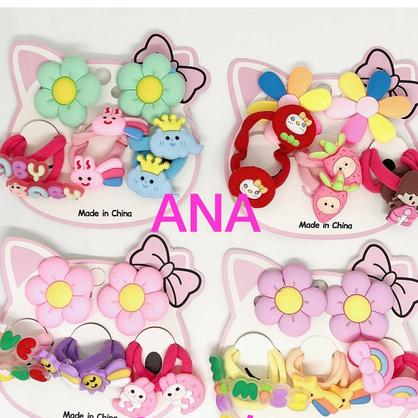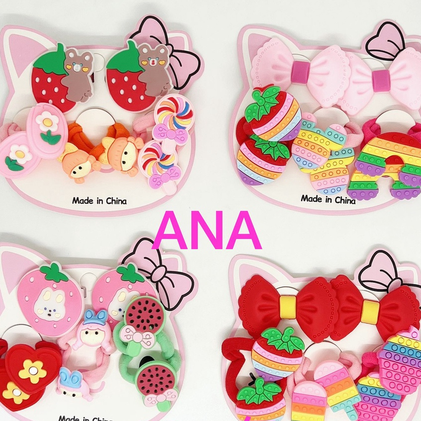 Kit 8 Peças elástico+laco de cabelo infantil modelos aleatorios desenho borracha