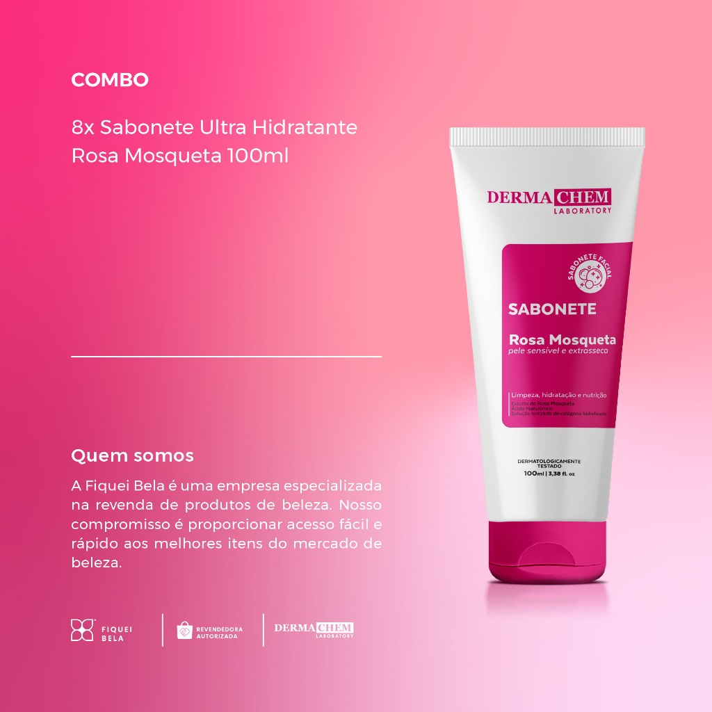 Kit 8 Sabonete Ultra Hidratante Rosa Mosqueta 100ml Dermachem